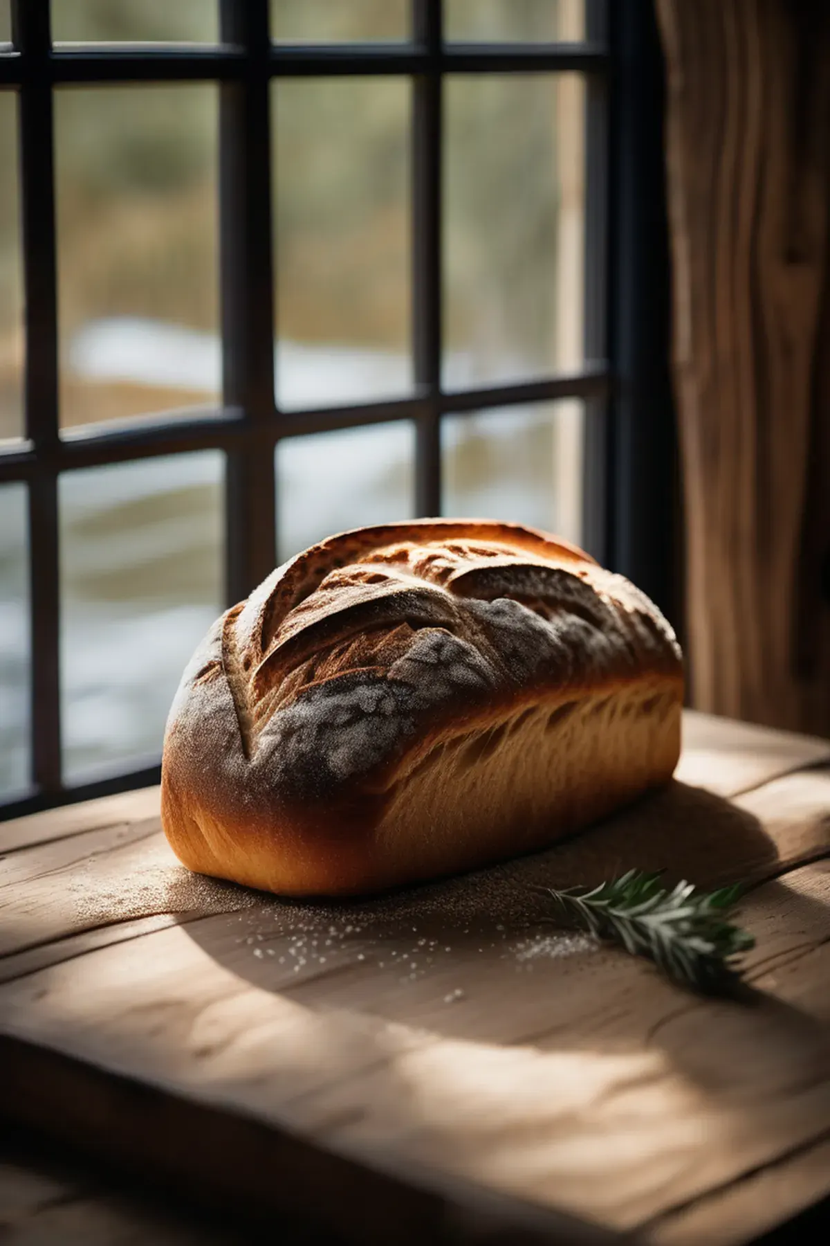 A rustic, tangy sourdough bread with a crispy golden crust and an open, airy crumb structure, perfect for toasting or enjoying alongside soups and stews.