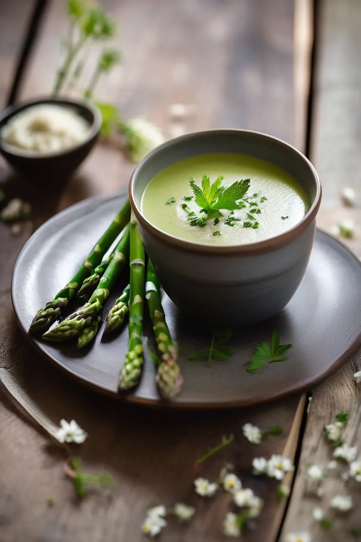 Stir in the roasted asparagus, unsalted chicken broth, and nutmeg. Cook over low heat for 5 minutes, until heated through.