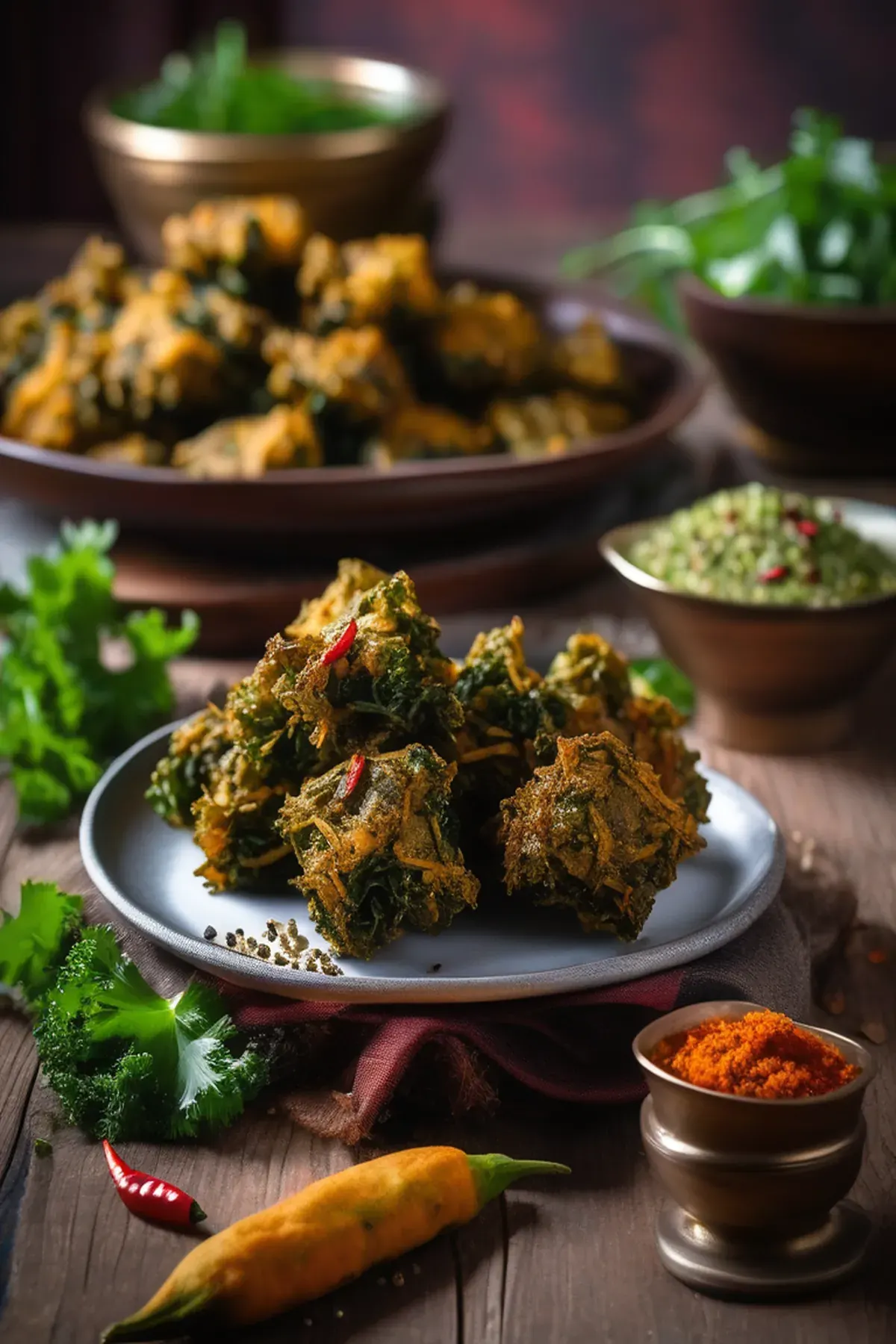Baked kale & potato pakoras