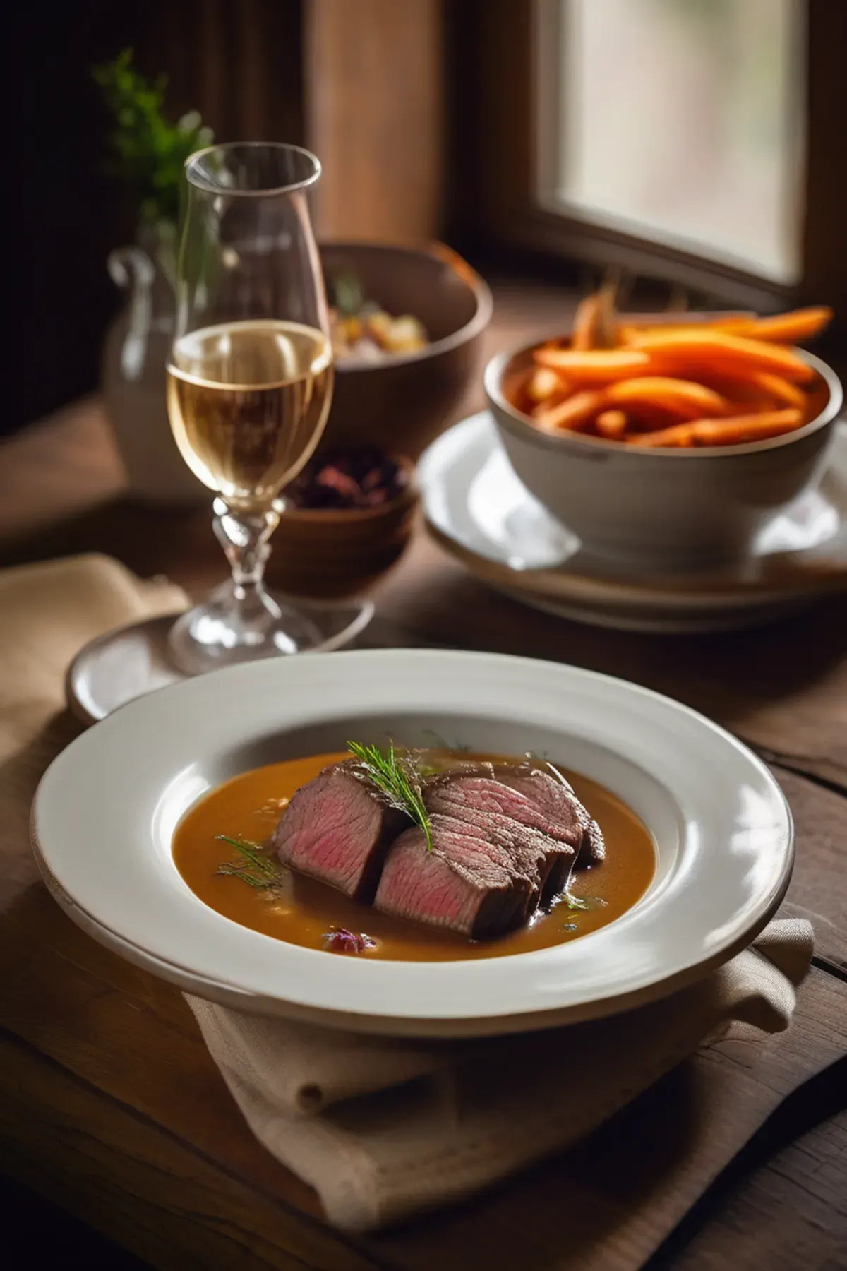 A luxuriously smooth and silky French beef sauce with deep, savory flavors, perfect for elevating steaks, roasts, or elegant plated dishes.