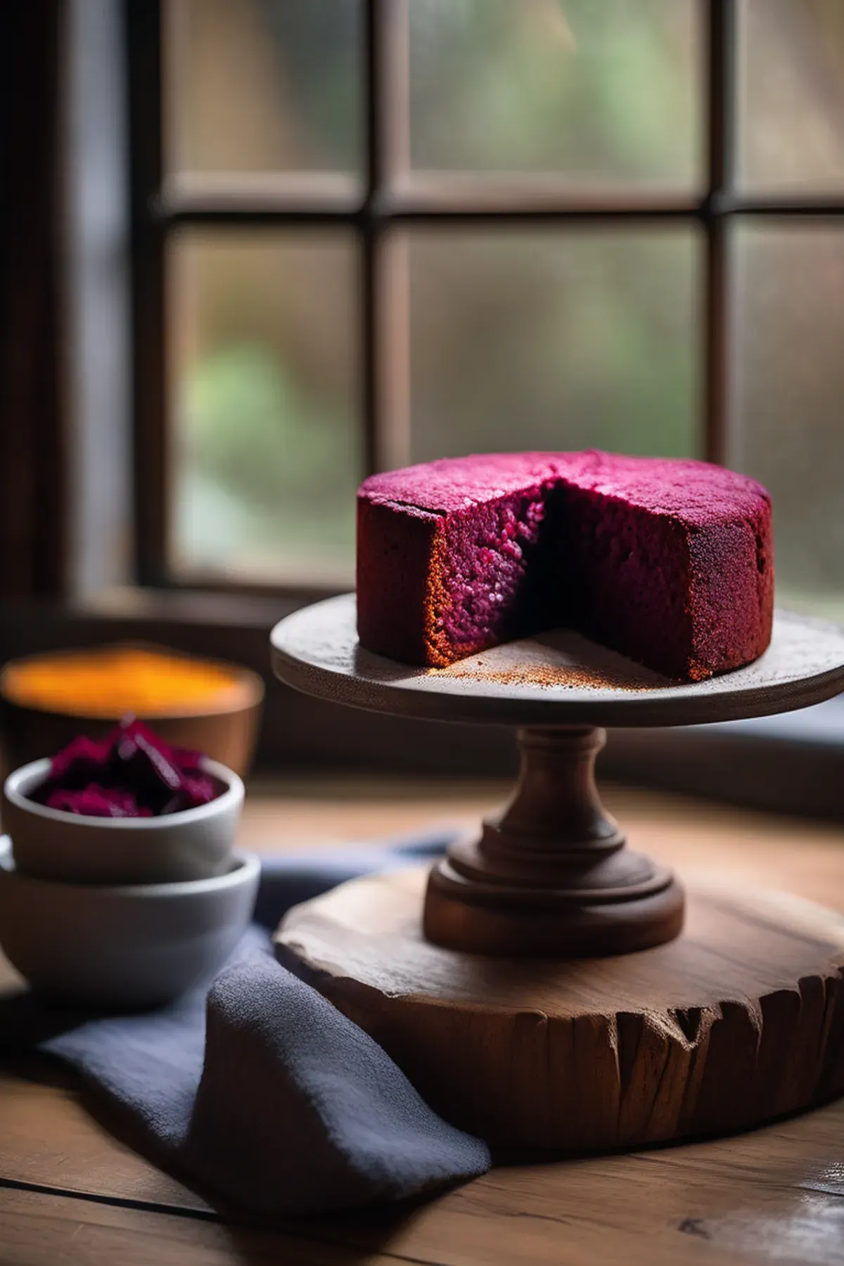 A vibrant, naturally sweet cornbread infused with roasted beetroot puree, delivering a stunning magenta crumb with subtle earthy notes and a tender, moist texture.