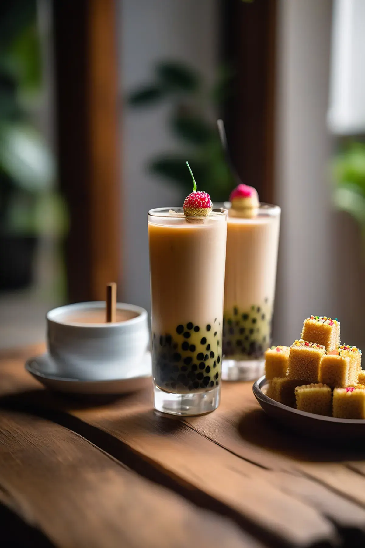 Place tapioca at the bottom of a tall glass, pour shaken mixture over pearls and serve with bubble tea straw and as much ice as you want.