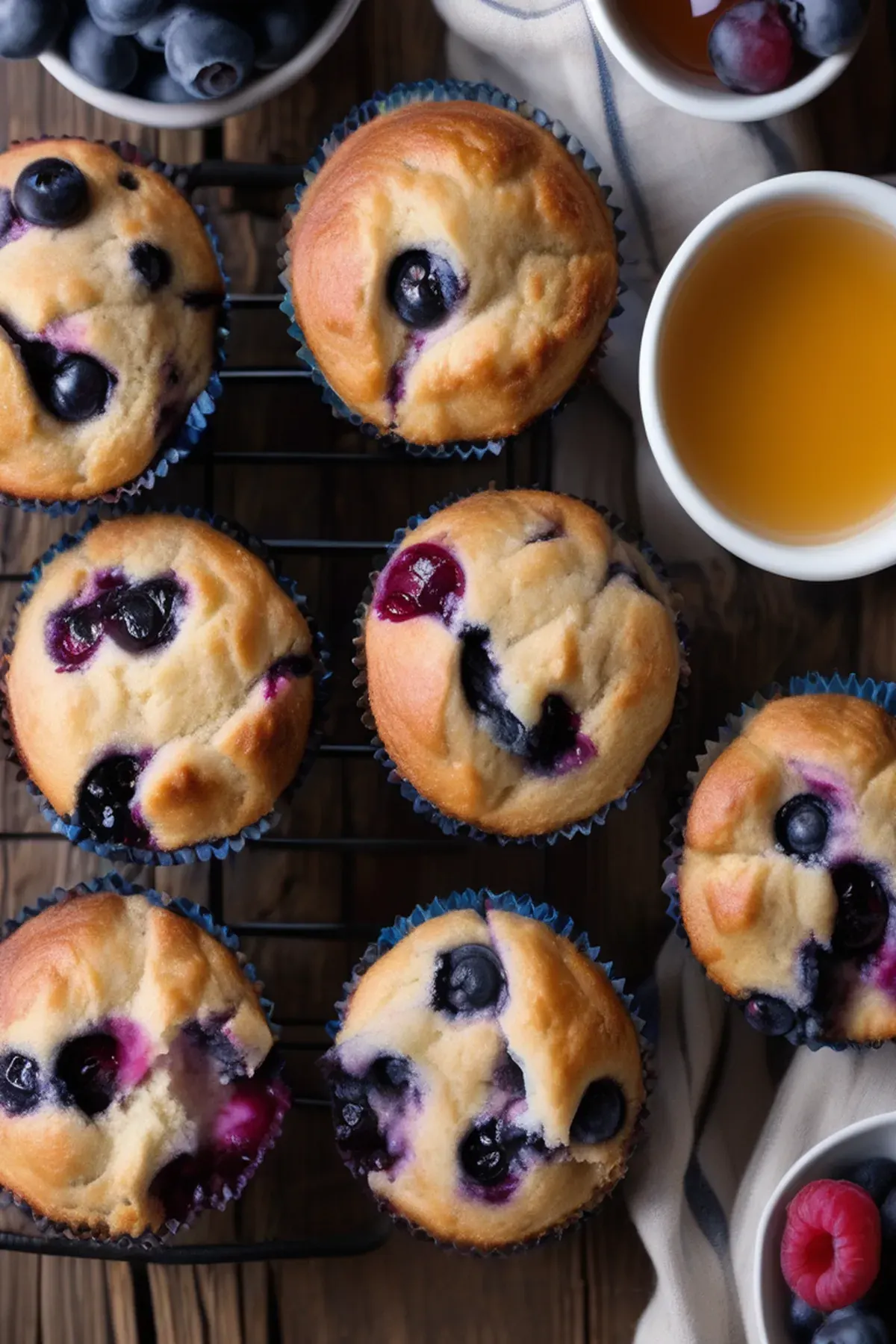 Tip: Coating the berries keeps them suspended throughout the muffins rather than settling to the bottom.