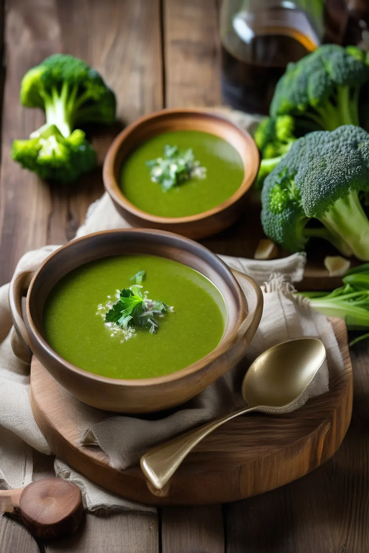 A velvety, creamy soup combining earthy broccoli with the distinctive tangy punch of crumbly Stilton cheese, finished with a touch of walnut for depth and texture.