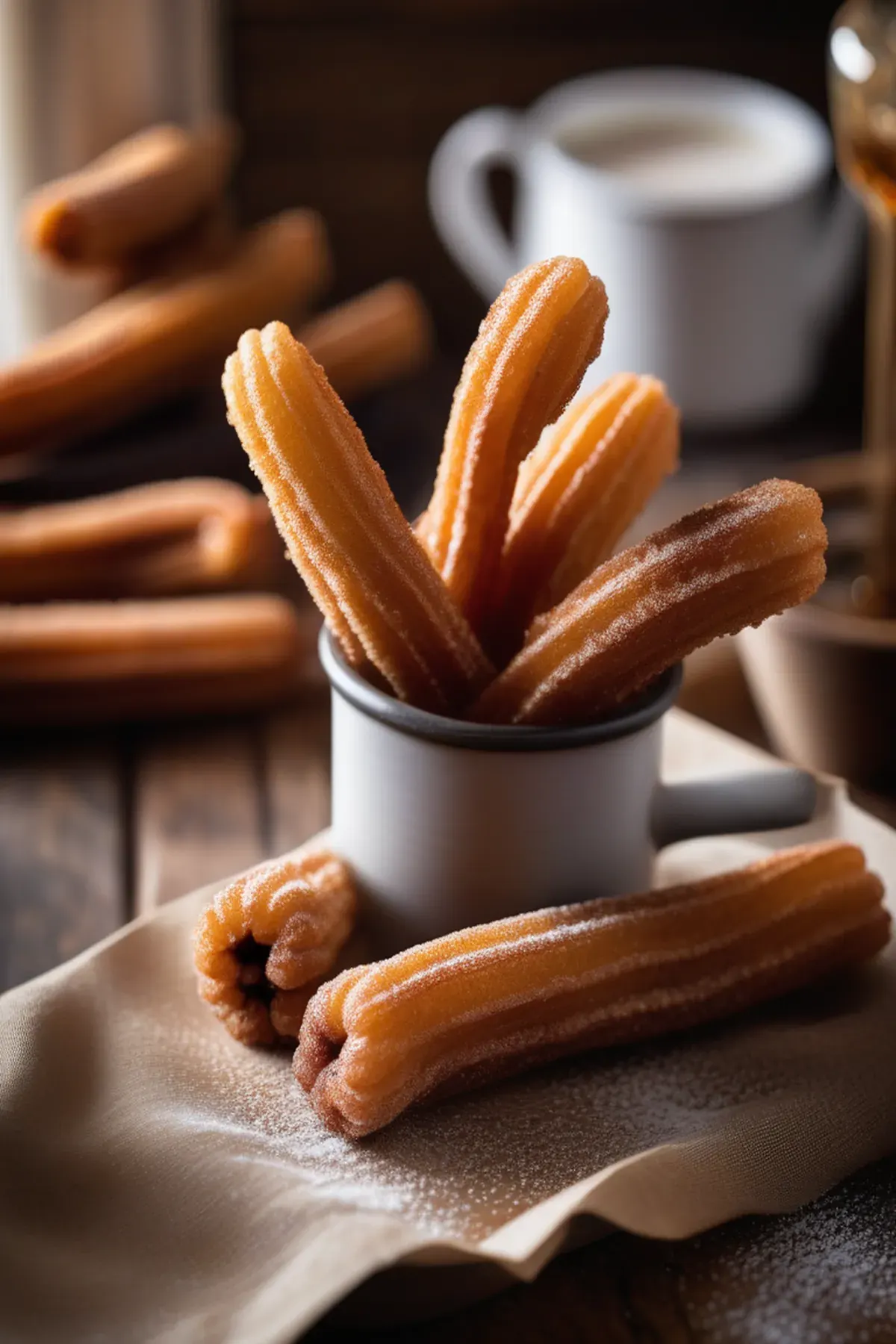 Dust the churros with confectioners' sugar and serve warm.