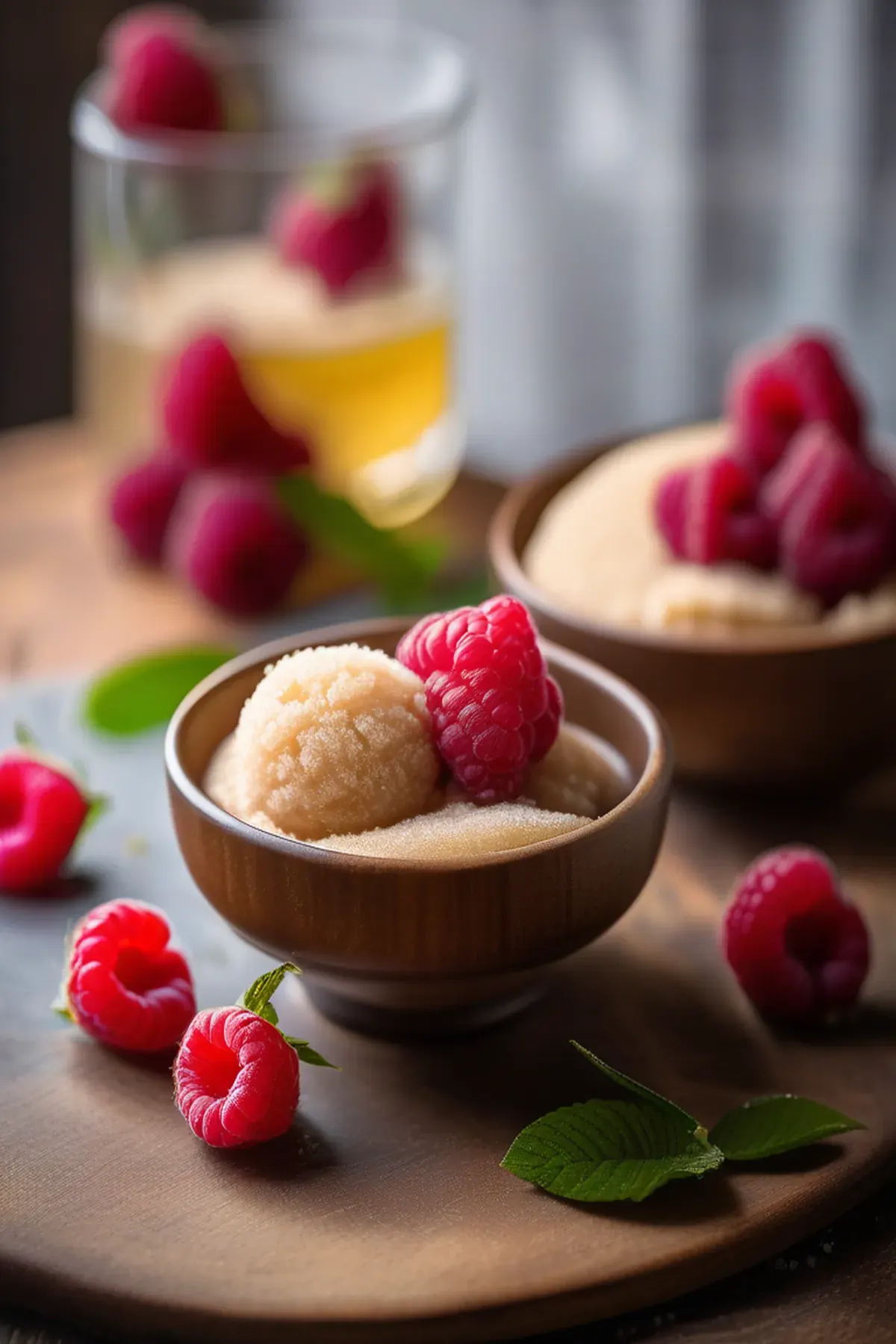 Serve the sorbet immediately, garnished with fresh raspberries if desired.