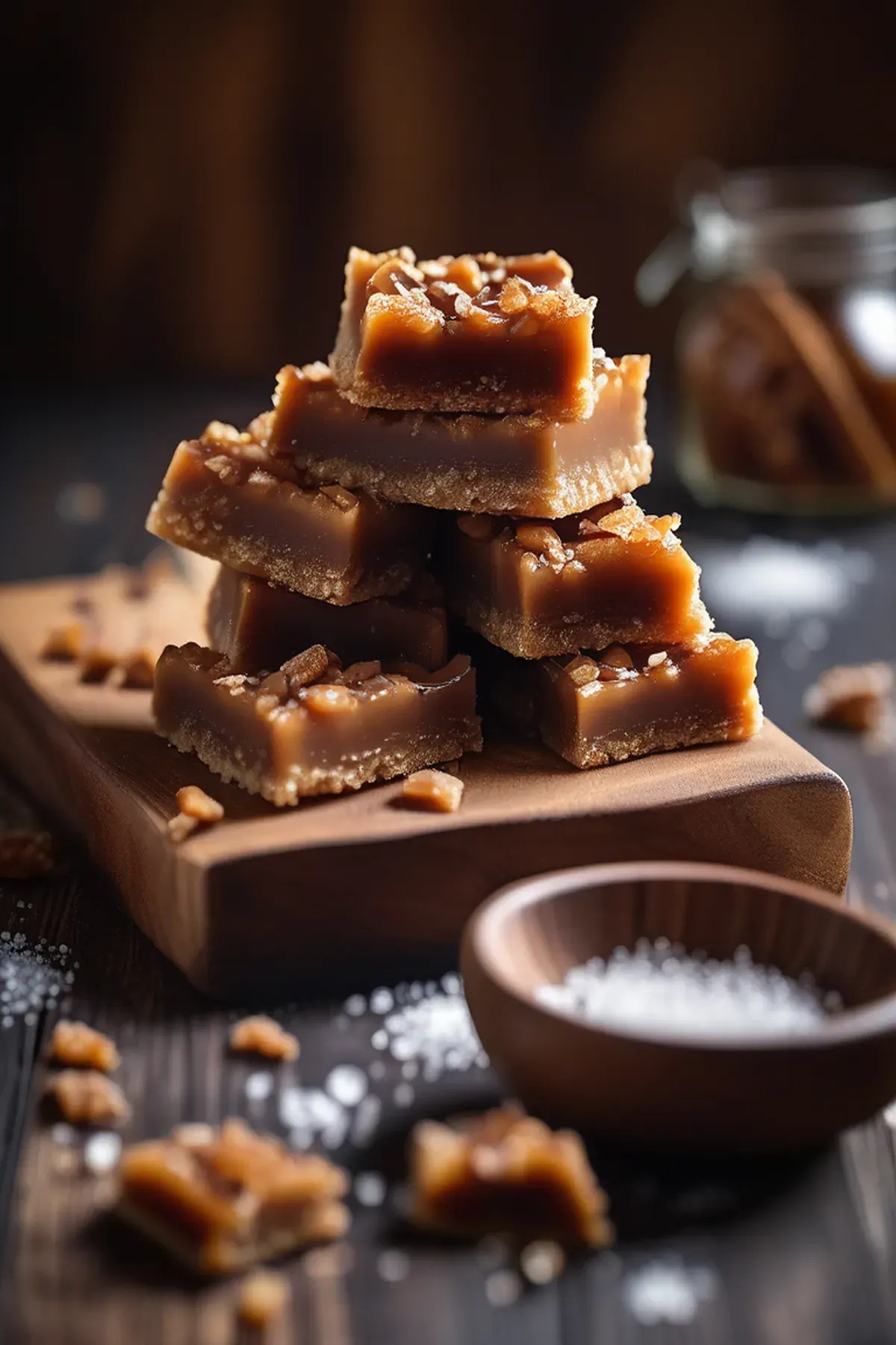 Remove the saucepan from the heat and stir in the flaky sea salt, bourbon whiskey (if using), and heavy cream.