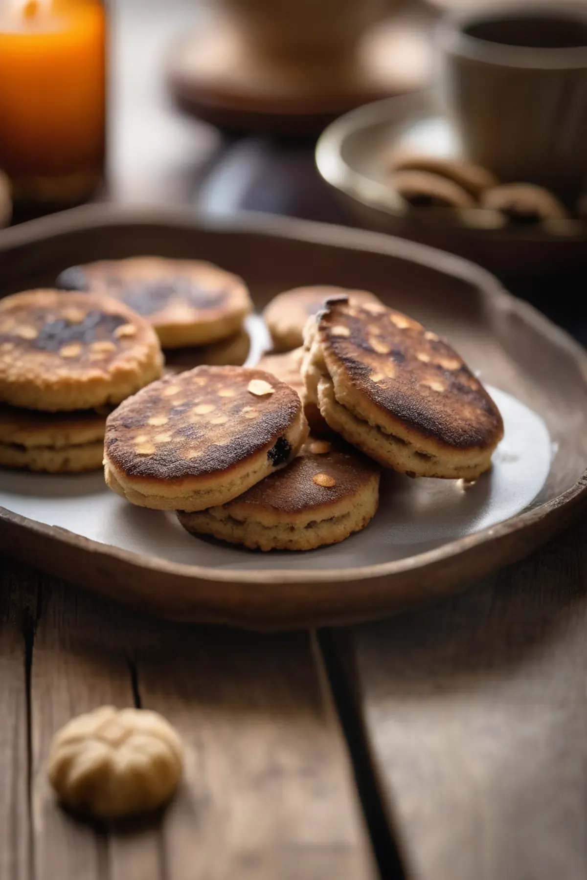 Warm, crumbly Welsh cakes with a rich, nutty brown butter flavor and a hint of vanilla, perfect for a cozy afternoon treat.
