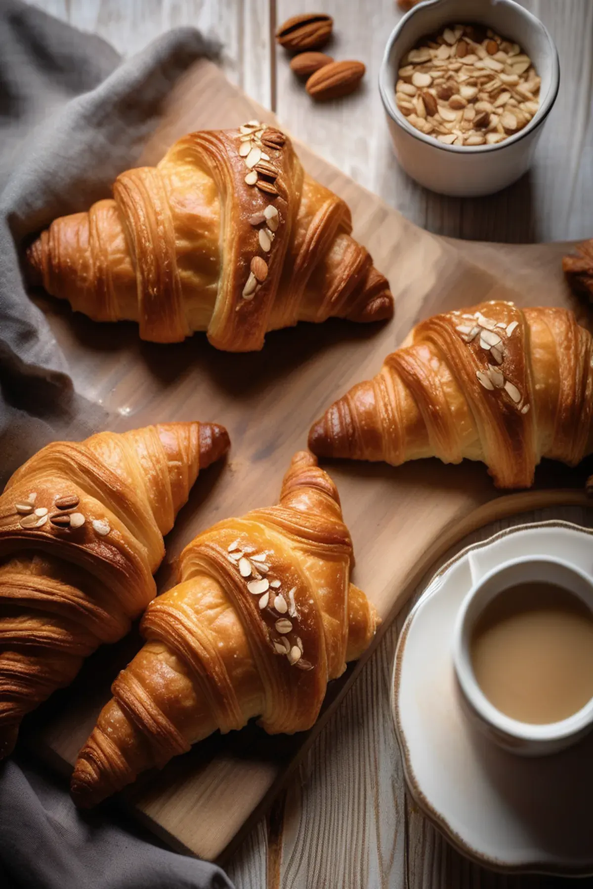 Flaky, buttery croissants filled with a rich butterscotch and crunchy almond filling.