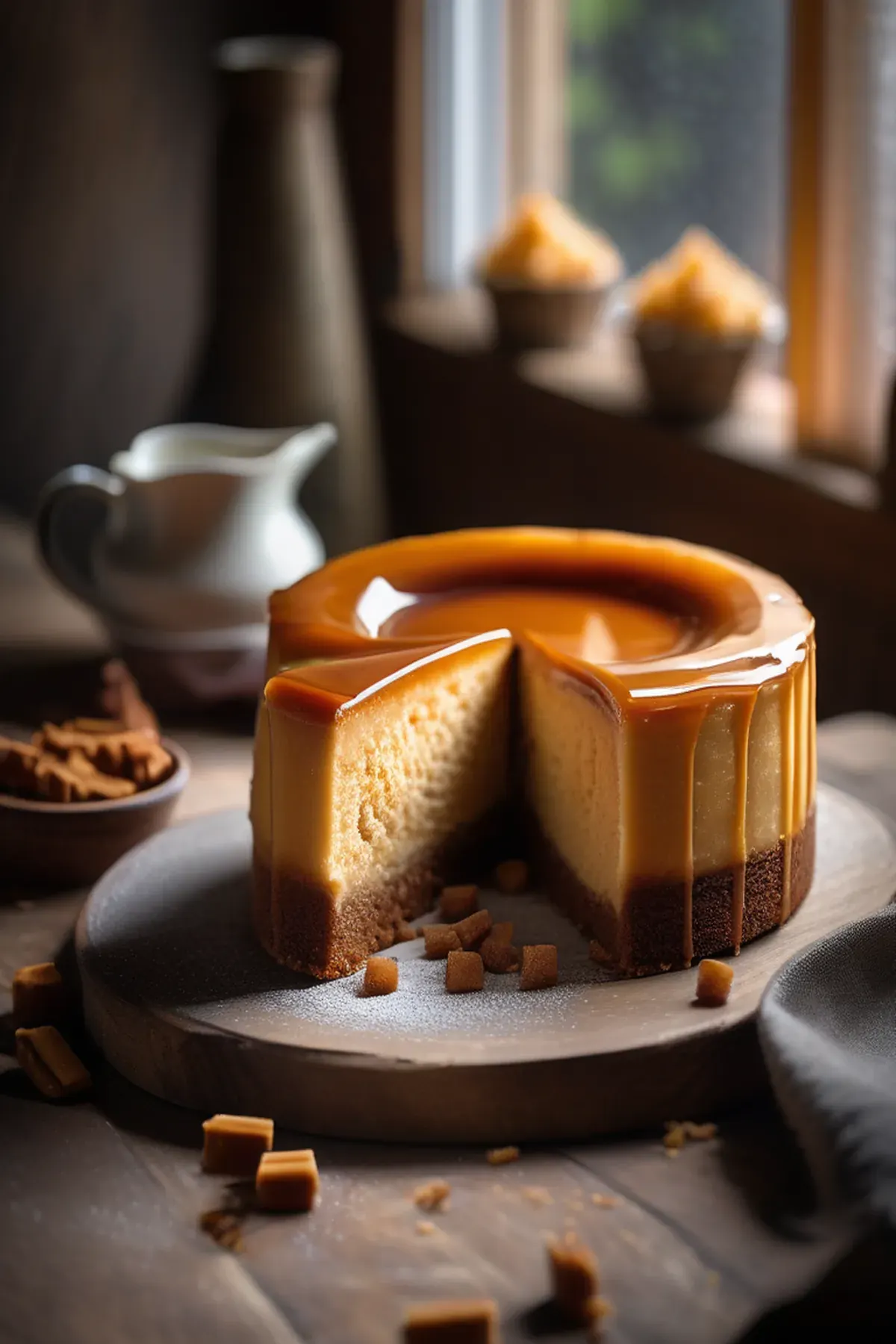A rich and creamy cheesecake with a caramelized butterscotch topping, inspired by the traditional Basque dessert