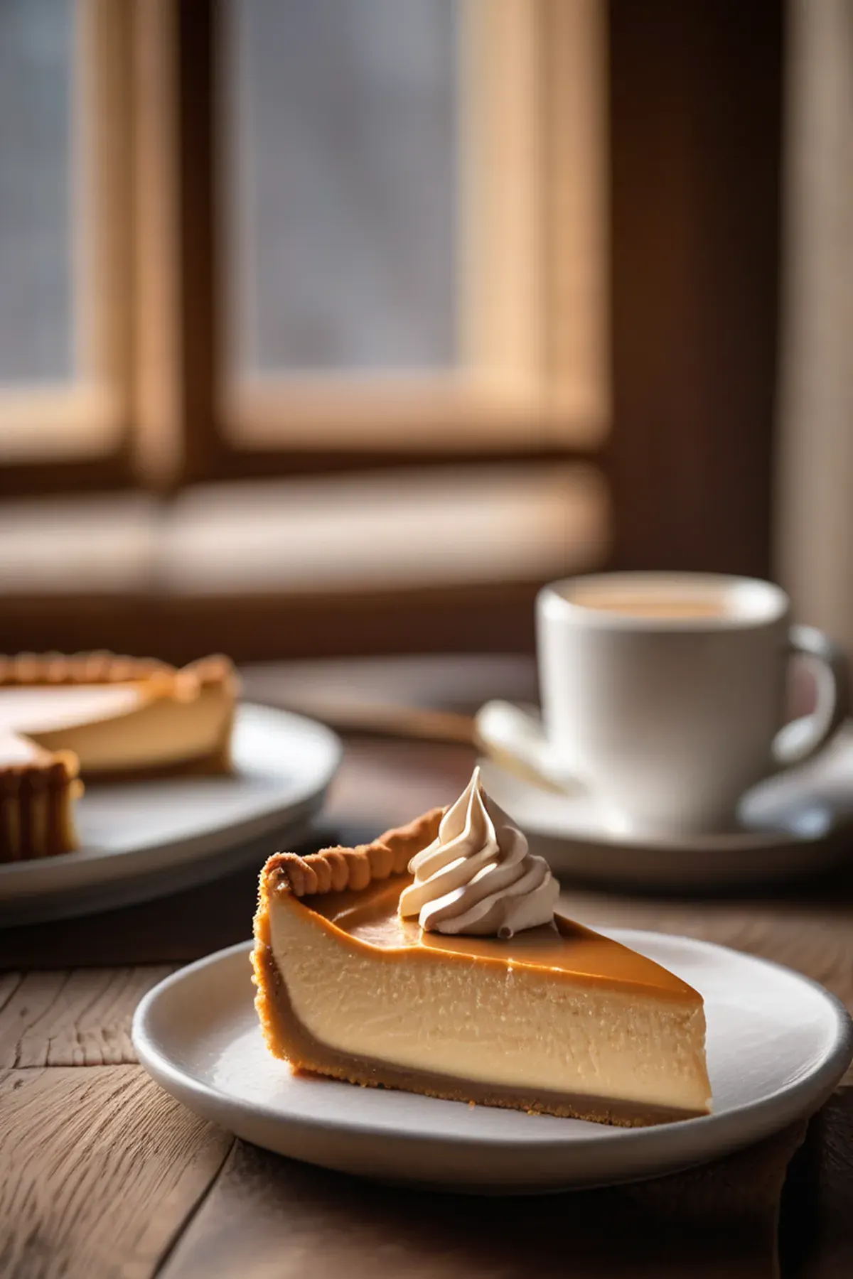A rich and creamy butterscotch cheesecake on a buttery pastry crust, topped with caramelized sugar.