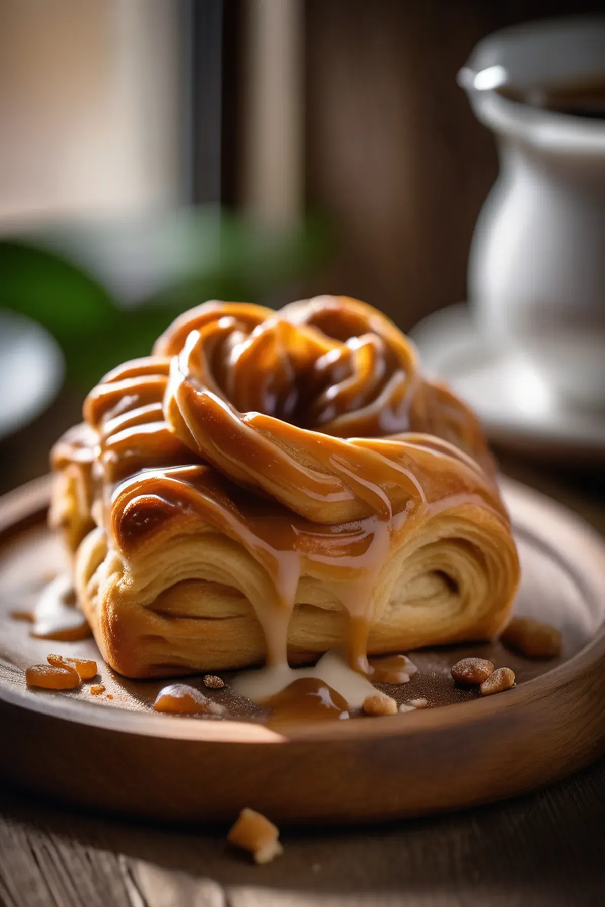 Indulge in the sweet, sticky flavors of butterscotch in this decadent Danish pastry.
