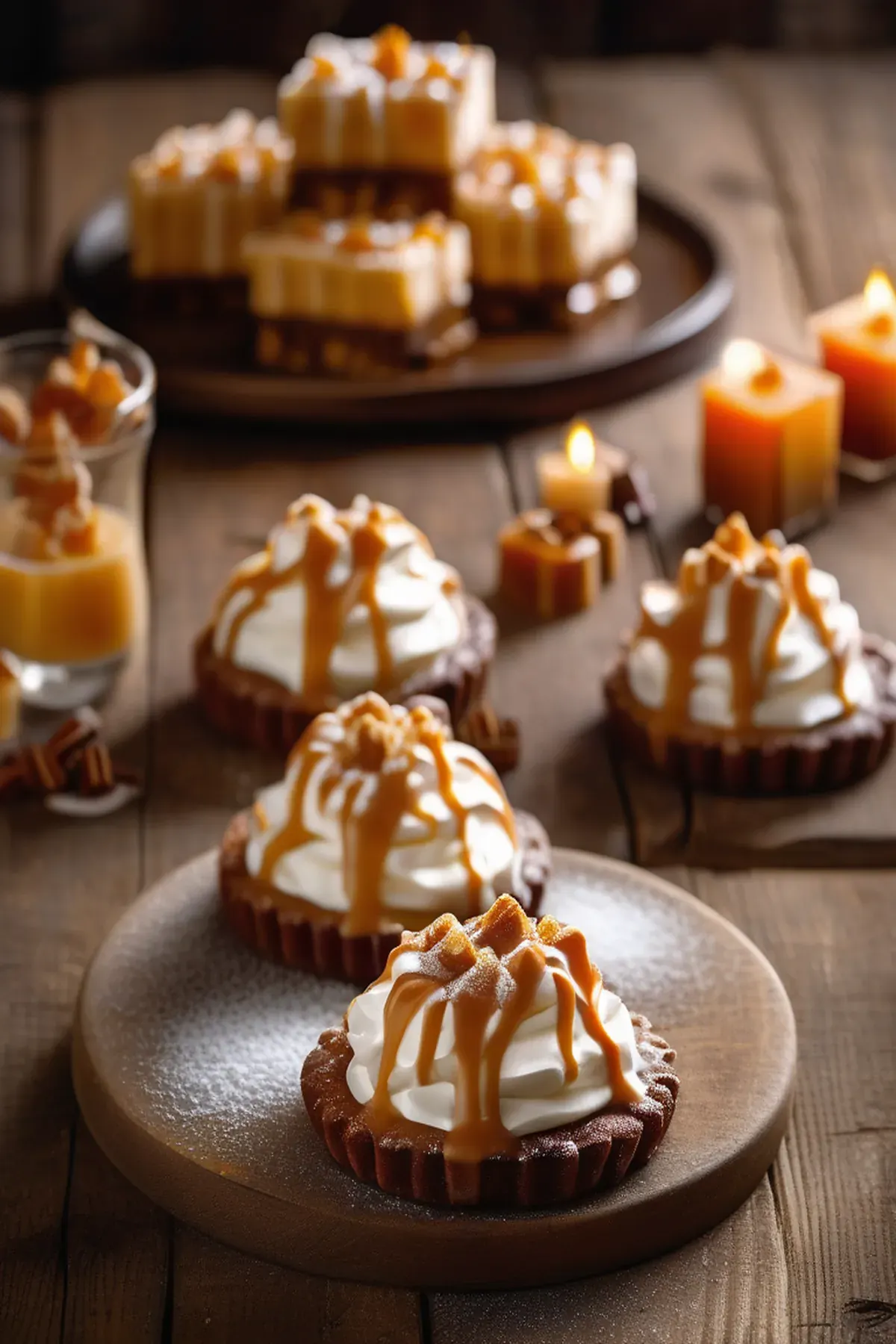 Spoon the whipped cream onto a serving plate or individual ramekins. Top with a dollop of butterscotch sauce and a sprinkle of confectioner's sugar.