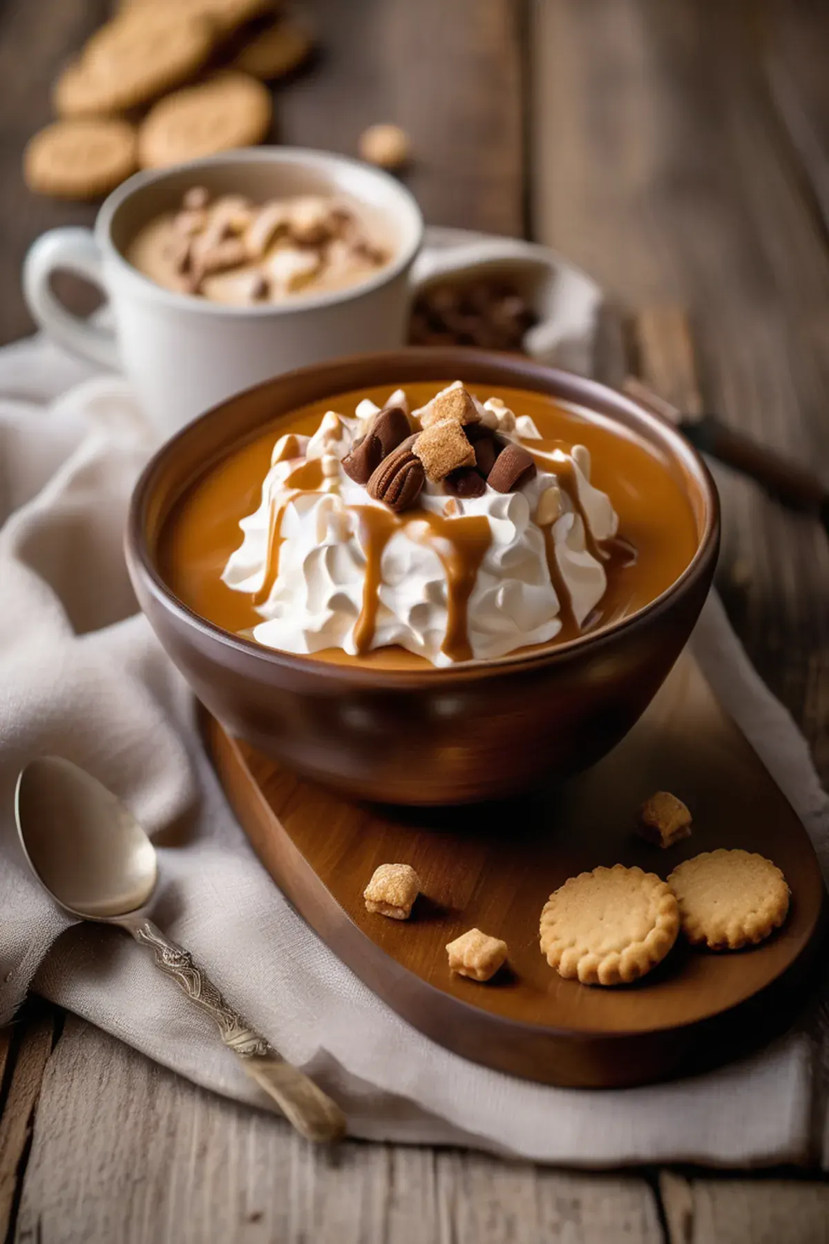 Repeat the layers, starting with the biscuits, then the butterscotch mixture, and finally the whipped cream.
