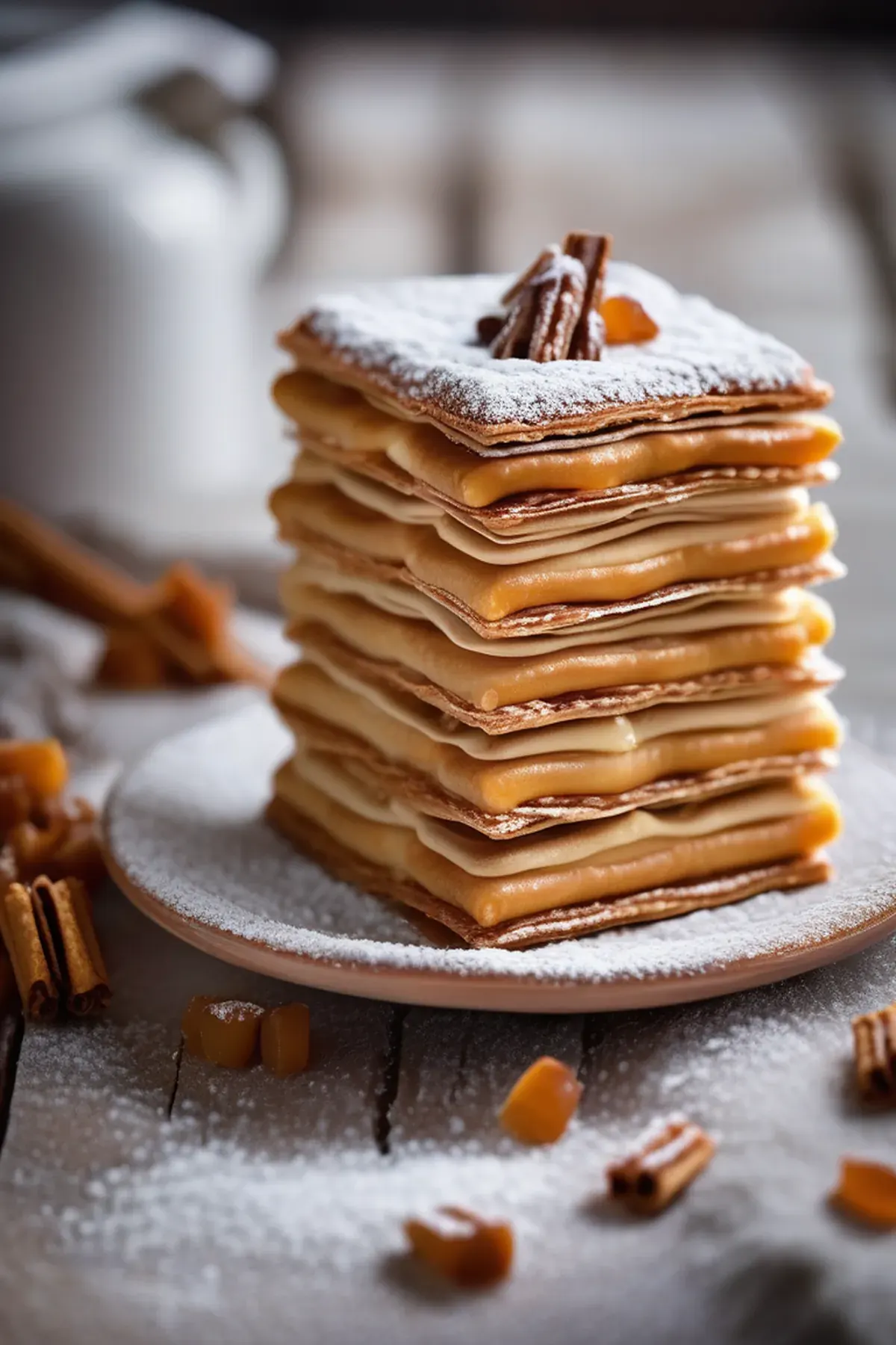 Allow the mille-feuille to chill in the refrigerator for at least 30 minutes before serving.