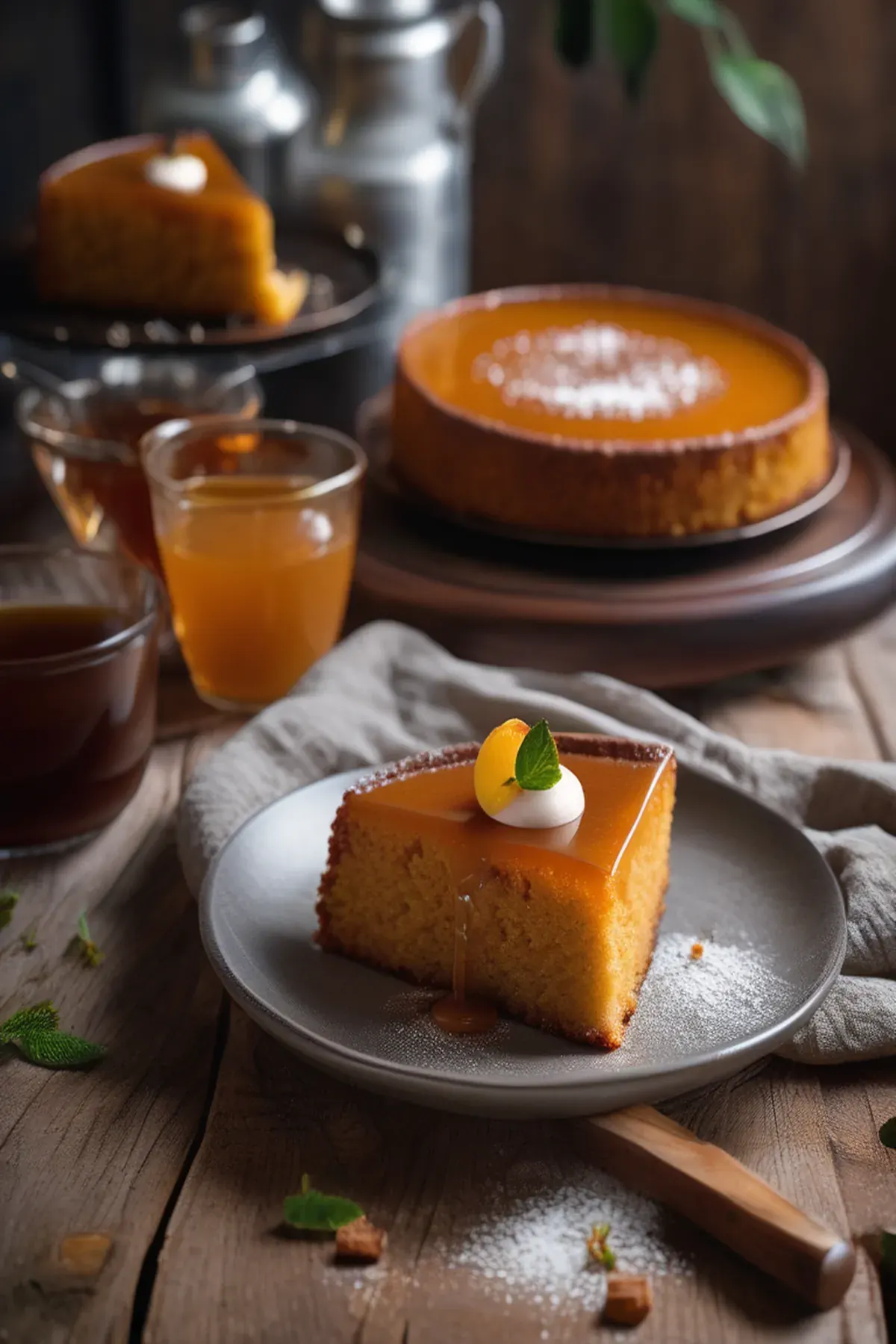 Preheat the oven to 180°C (350°F) and grease a 20cm round cake pan. Mix together the cooled polenta, butterscotch syrup, butter, granulated sugar, large eggs, and baking powder until well combined.