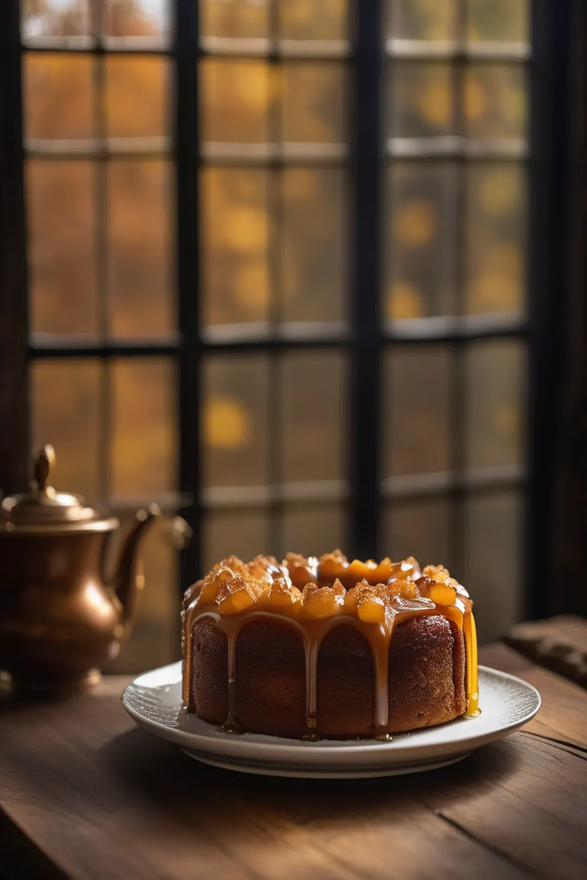 Invert onto a serving plate and serve warm with a scoop of vanilla ice cream.