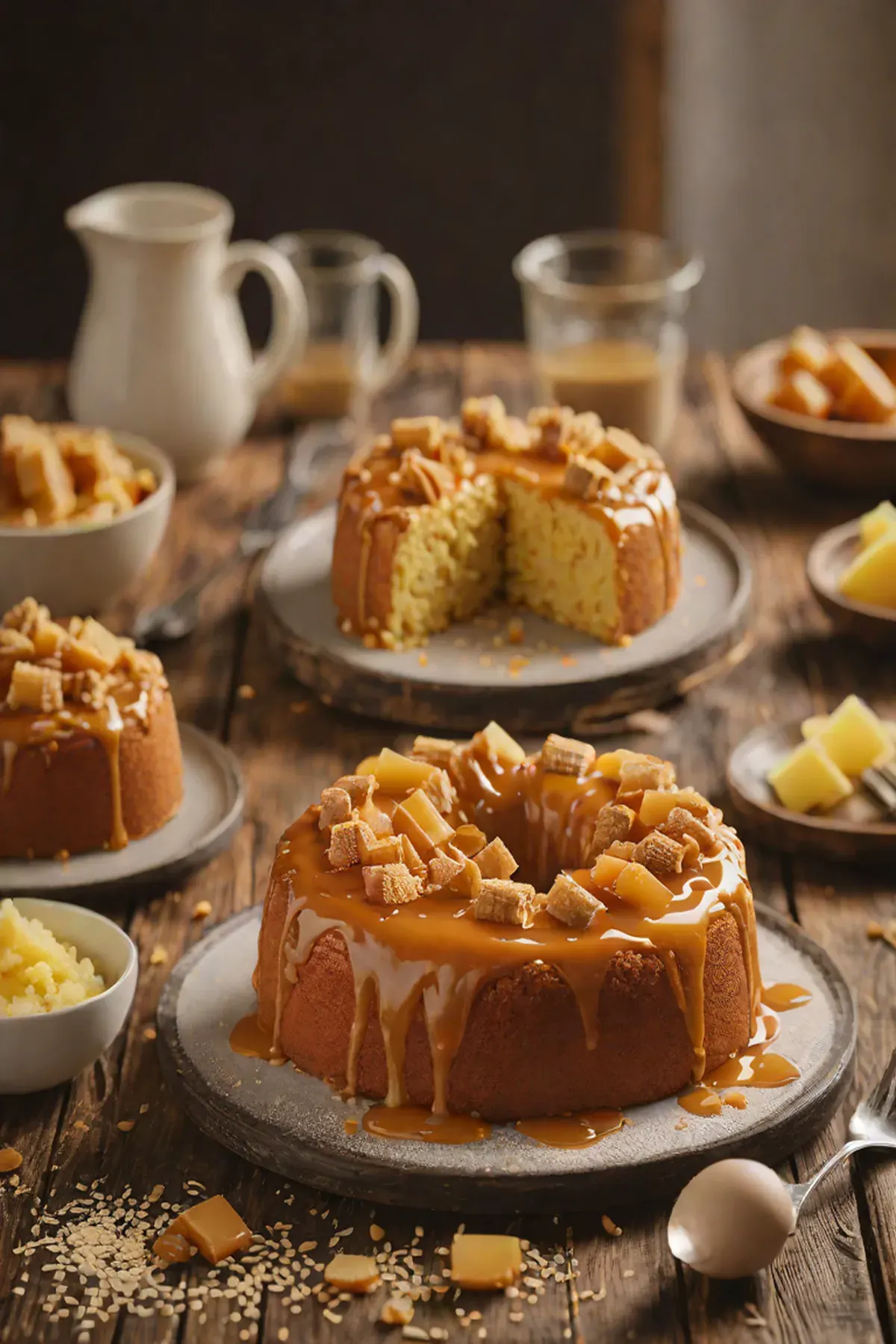 Rich, buttery cake filled with a salted caramel centre, topped with a crunchy sugar glaze.