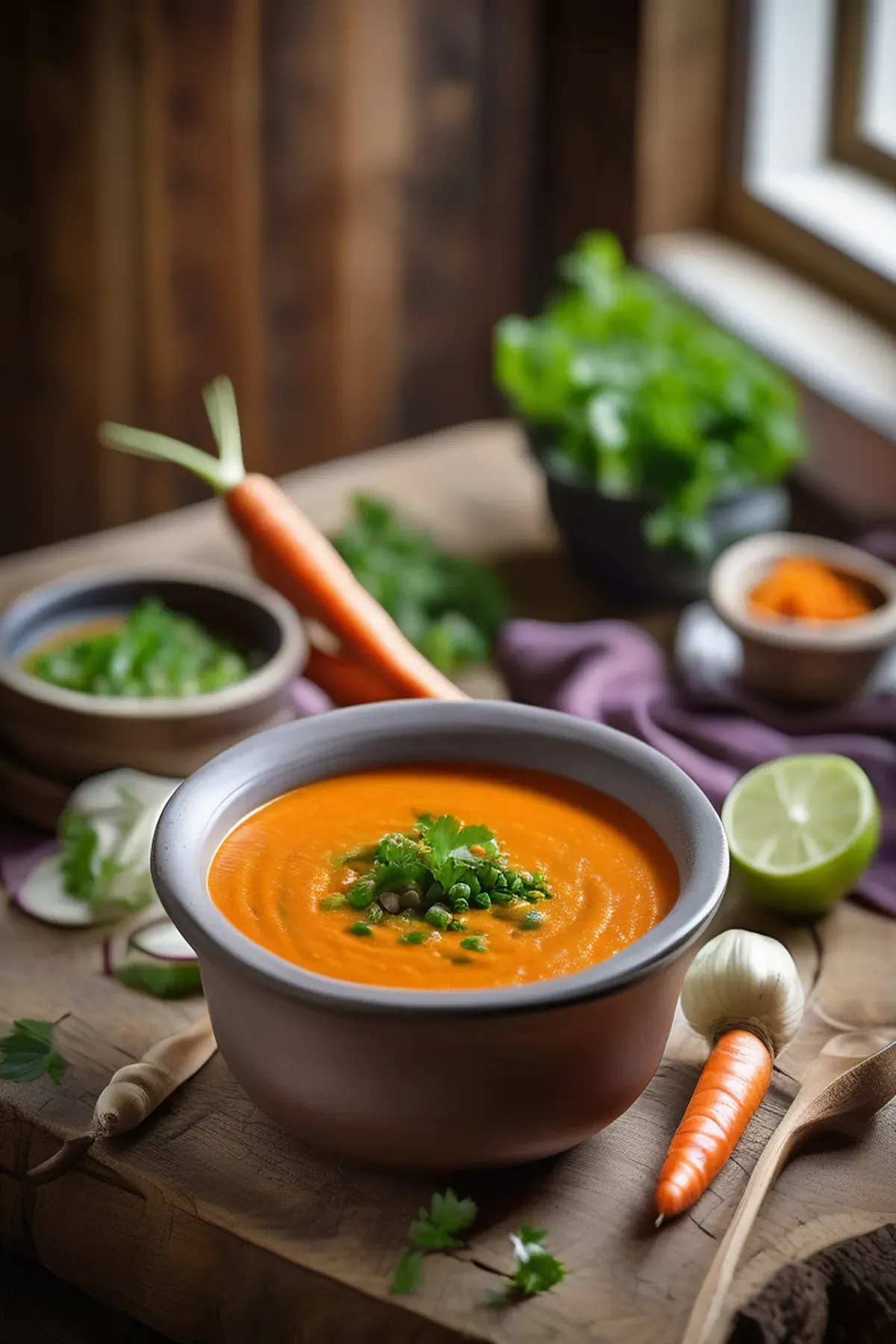 A warming, creamy chowder bursting with sweet roasted carrots and aromatic coriander, finished with fresh herbs and a hint of citrus for a sophisticated comfort soup.