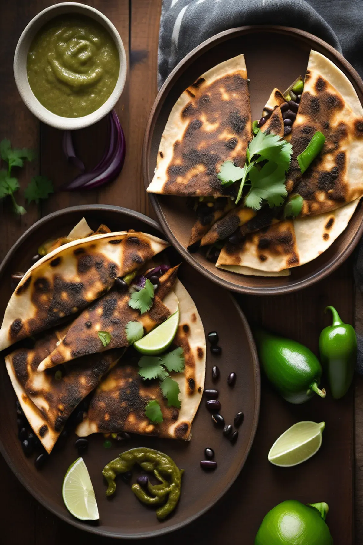 Charred Poblano and Black Bean Quesadillas