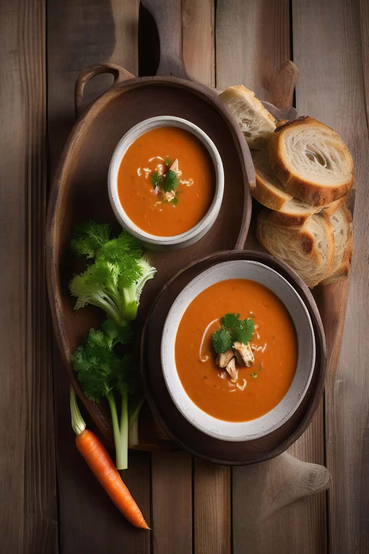 A silky, luxurious soup featuring tender shredded chicken, roasted vegetables, and cream infused with warm spices and fresh herbs. Perfect for a comforting dinner that feels elegant yet simple to prepare.