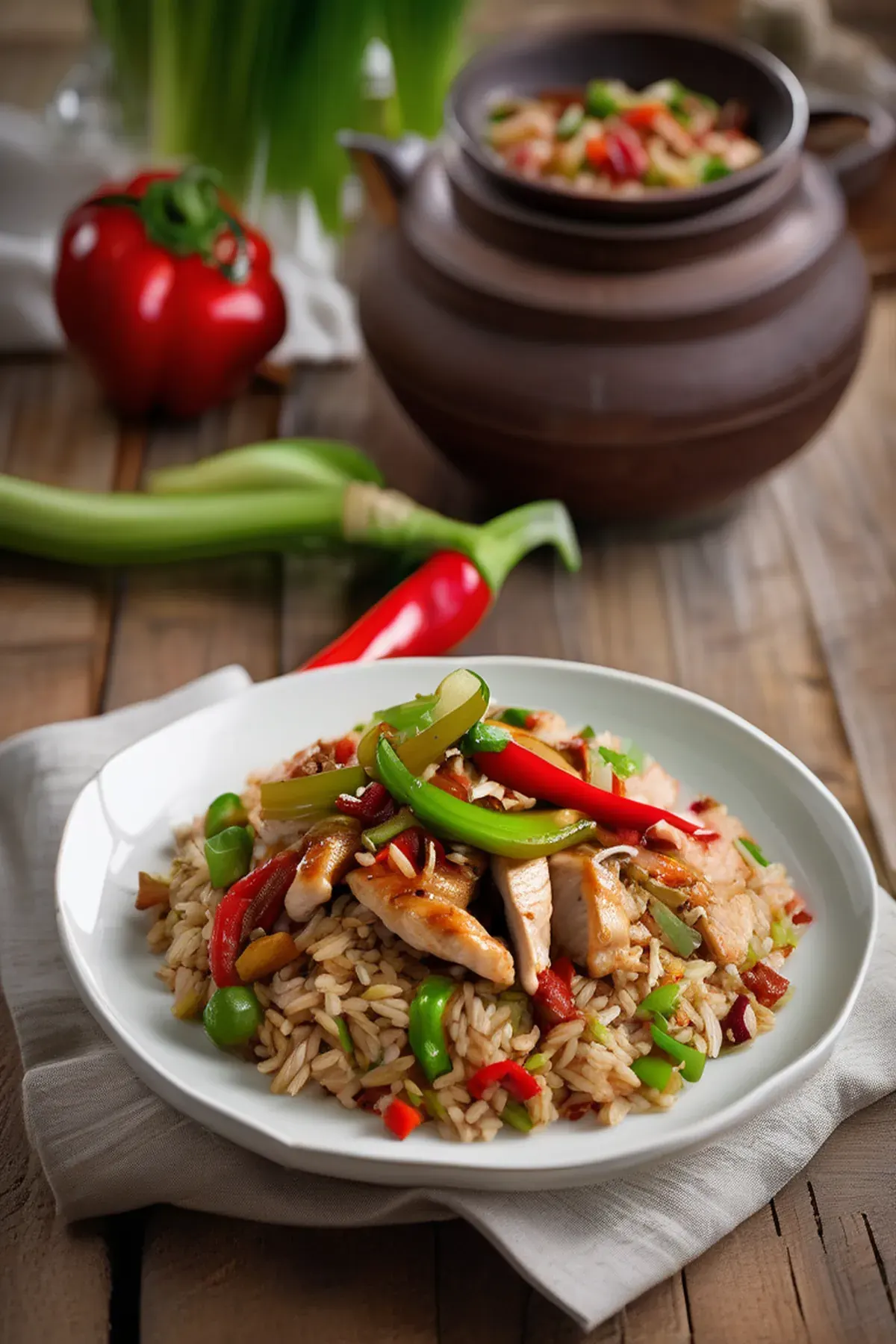 Chicken, leek & brown rice stir-fry