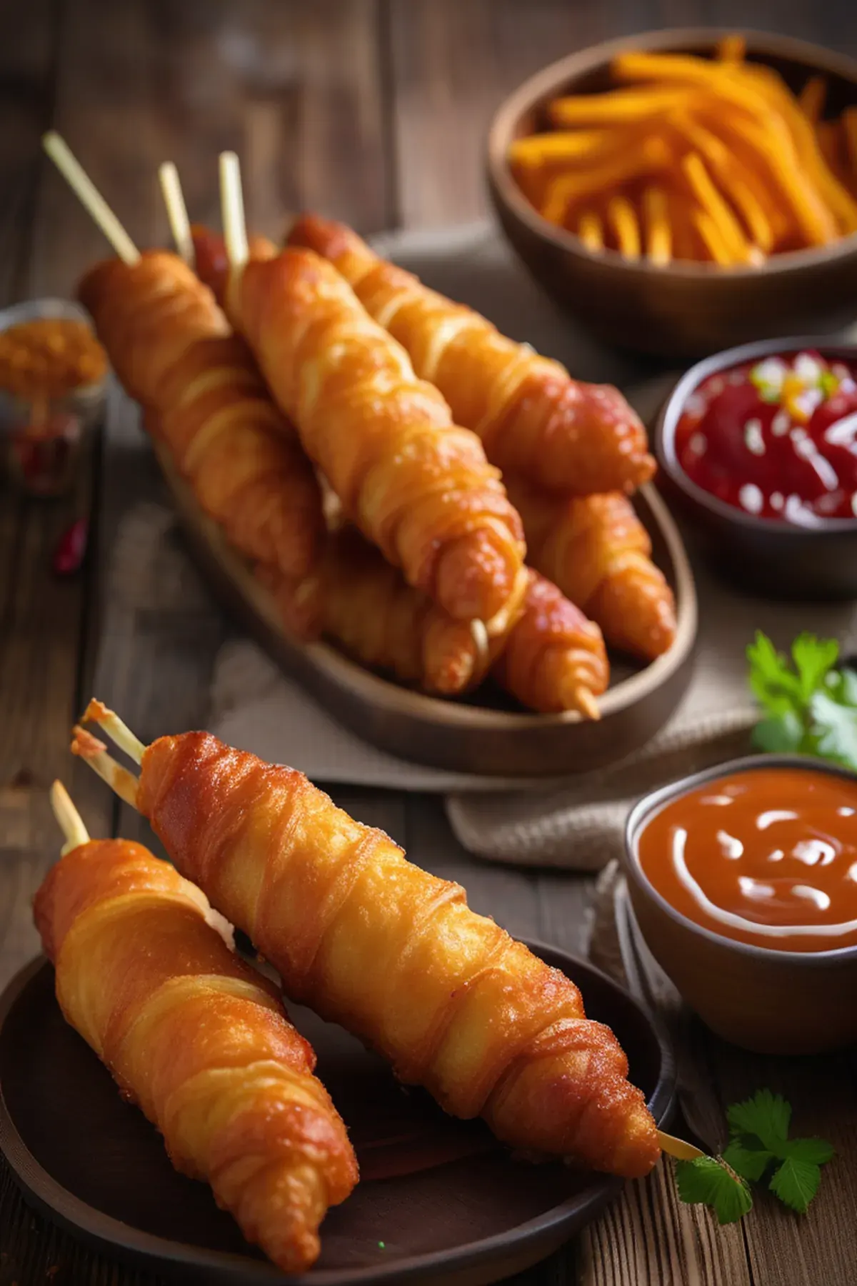 Chili Cheese Croissant Corndogs
