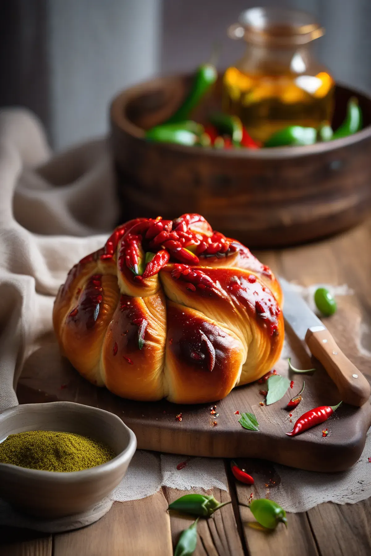 This is my favorite way to transform traditional challah into something with real kick. I love how the fresh chillies bring heat while the cumin and garlic add depth to this beautiful braided loaf. Red chillies are packed with vitamin C, which boosts immunity, and they really shine when baked into soft, golden bread. What makes this recipe so approachable is that it comes together in just over an hour from start to finish, making it perfect for a weekend bake without the fuss. The honey keeps everything beautifully moist while balancing the spice, and honestly, once you master this one, you'll be making it constantly.