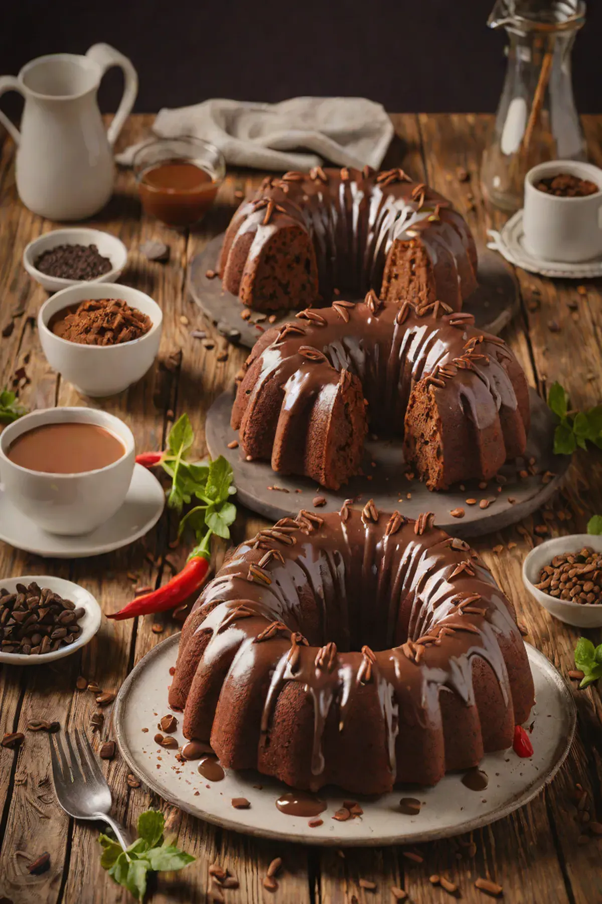 Add the melted chocolate to the cake batter and mix until well combined. Stir in the chilli pepper flakes and salt.
