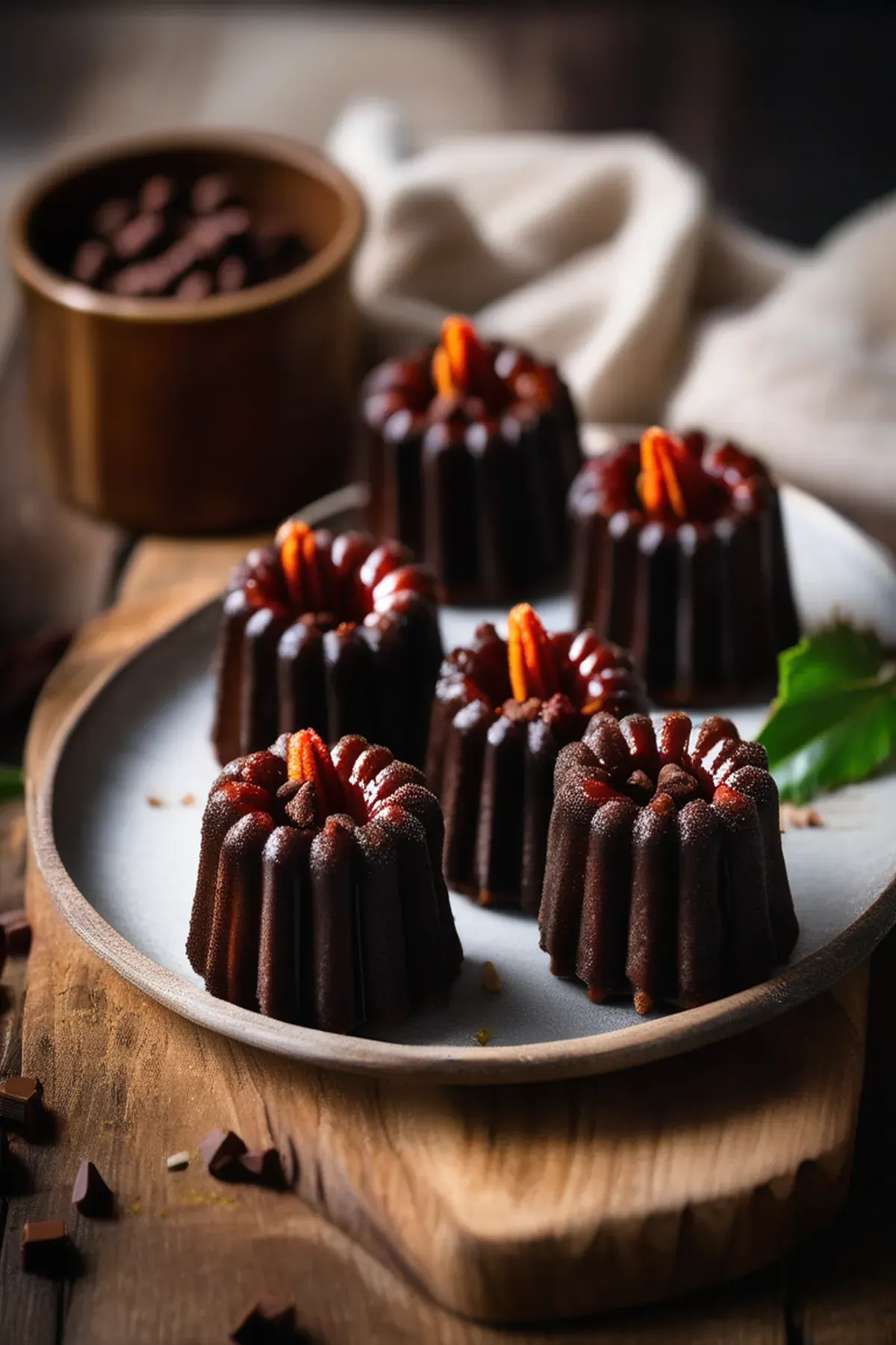 Indulge in the sweet and spicy fusion of chocolate and chilli in these bite-sized cannelés.