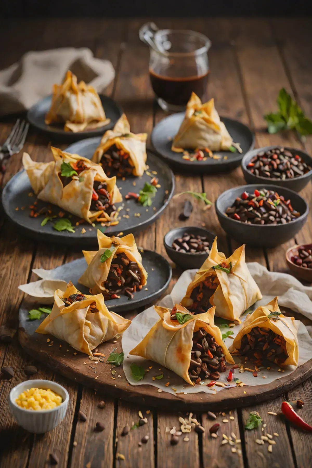 Place a tablespoon of chilli chocolate spread on one half of the filo sheet, leaving a 1 cm border around the edges.