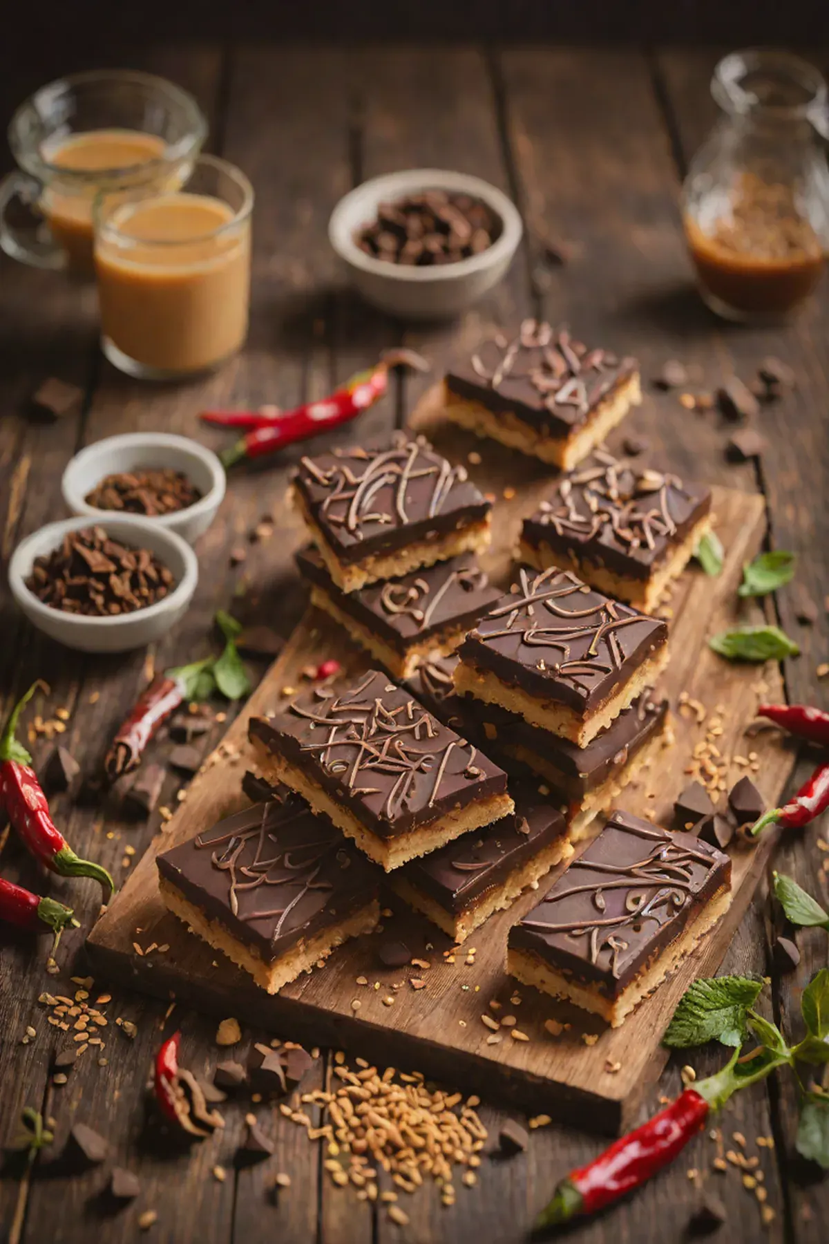 In a medium bowl, whisk together the flour, cocoa powder, salt, and chilli flakes.