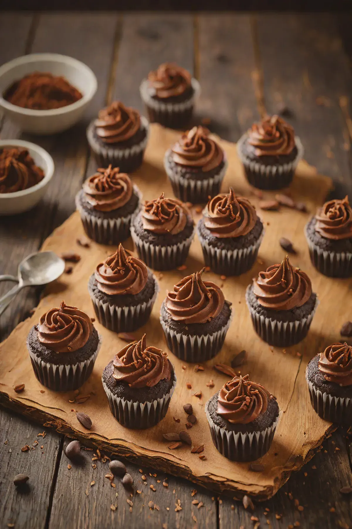 Tip: Make sure the cupcakes are completely cool before frosting to avoid melting the chocolate.