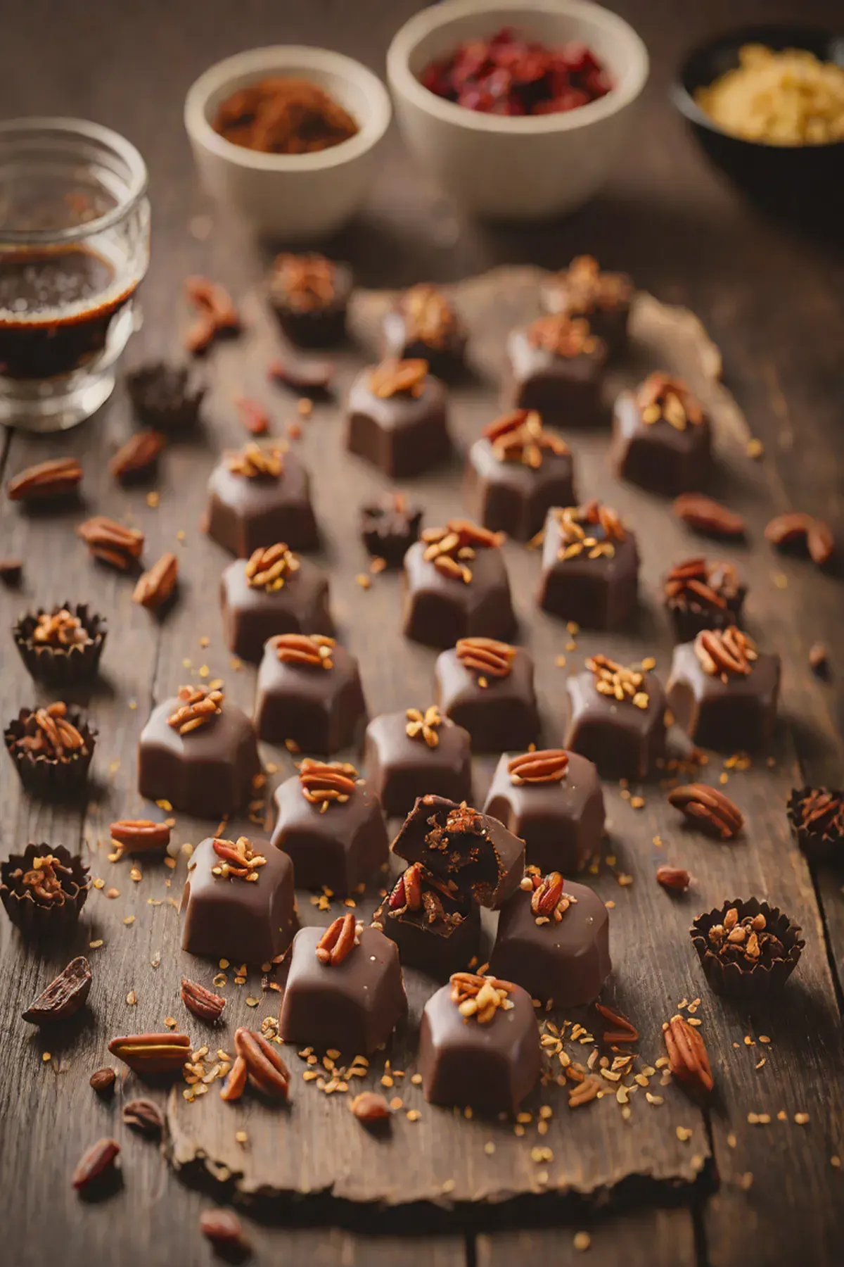 Once set, use a sharp knife or cookie cutter to cut the pralines into desired shapes.