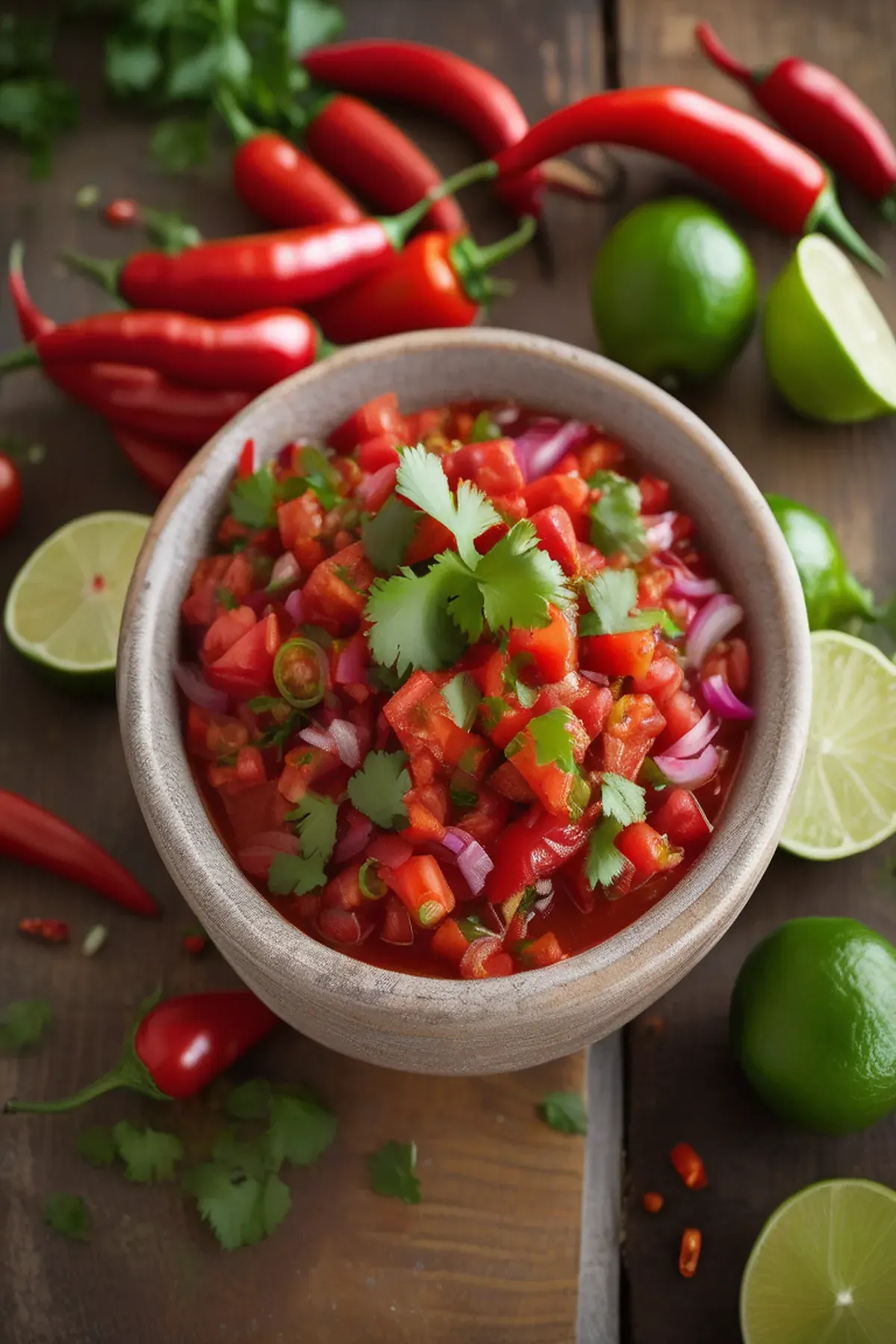 This is my go to recipe whenever I need a quick, vibrant condiment that takes just fifteen minutes to throw together. Fresh tomatoes are packed with lycopene, a powerful antioxidant that's great for your heart, and combined with fiery red chillies and zesty lime juice, you get a salsa that's both delicious and nutritious. The beauty of this recipe is its simplicity and affordability, using basic pantry staples that come together with minimal effort. Whether you're serving it with chips, tacos, or grilled chicken, this chilli salsa never fails to impress and always tastes like you've put in way more work than you actually have.