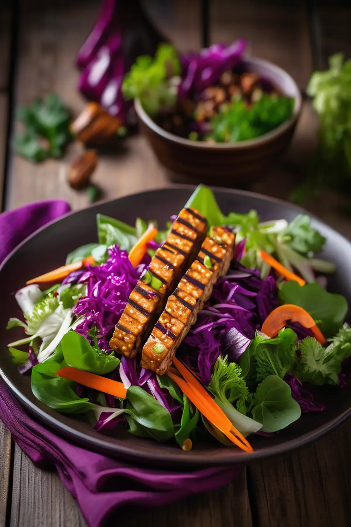 This Chinese tempeh salad is one of my go to weeknight dinners because it comes together in under an hour and tastes absolutely delicious. Tempeh is such a great protein choice since it's packed with probiotics that support your digestion while keeping you full and satisfied. I love how simple it is to throw together: you just cook the tempeh, chop your vegetables, and toss everything with a quick homemade Asian dressing. The whole salad is vibrant and crunchy, loaded with fresh greens, cabbage, carrots, and celery, then topped with peanuts and sesame seeds for extra flavor and texture. It's nutritious comfort food that won't break the bank or keep you stuck in the kitchen.