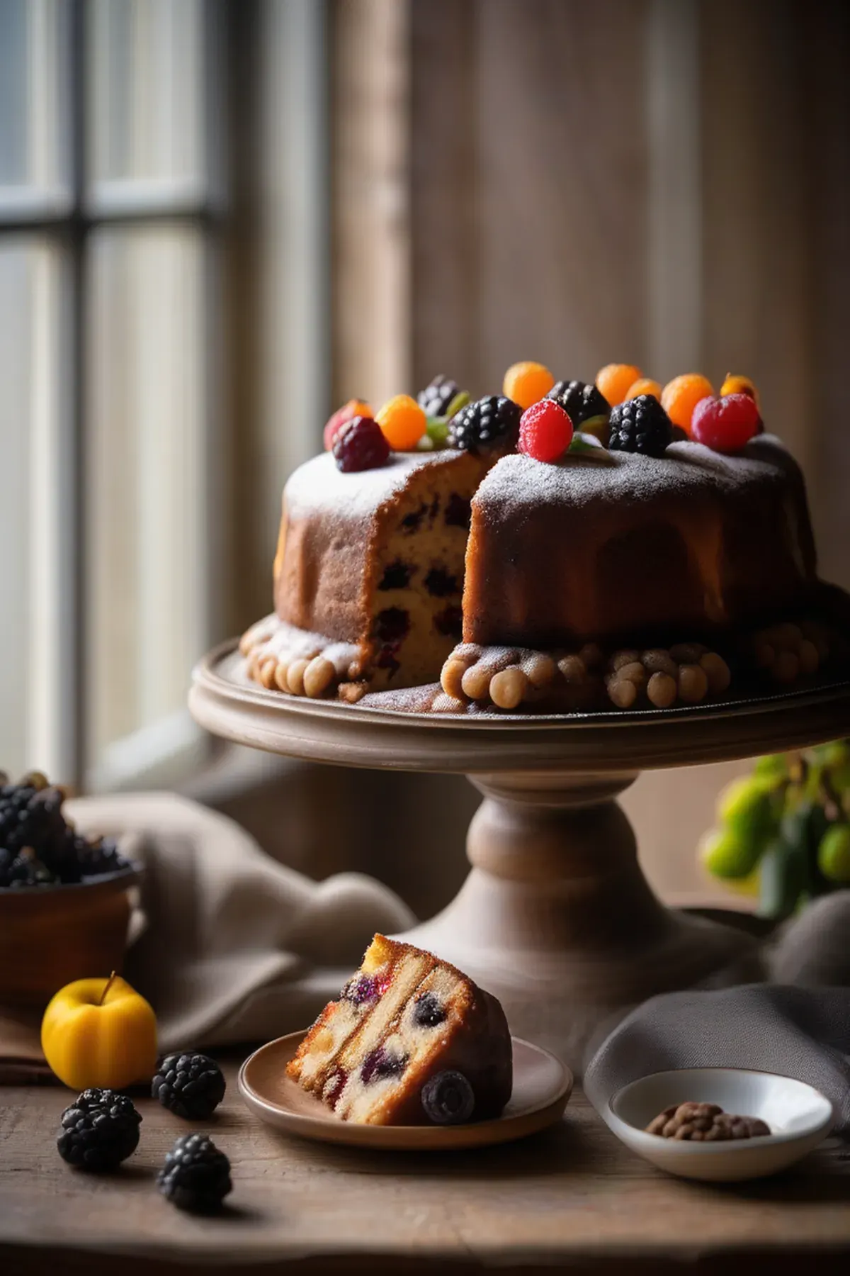 Fold in the self raising flour, ground almonds, and mixed spice gently with a metal spoon until just combined. Stir in the milk to loosen the batter slightly, then fold through the mixed dried fruit.