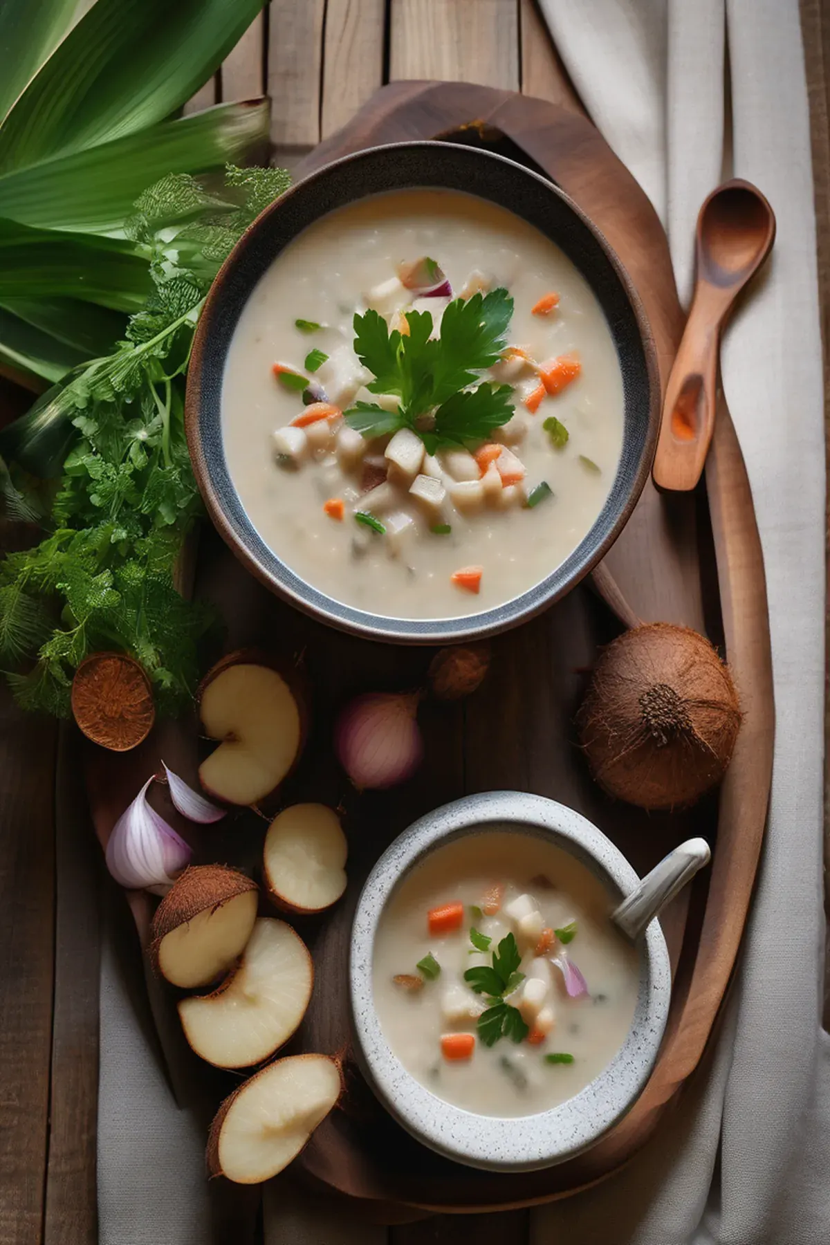 A rich and creamy soup made with coconut milk, potatoes, and a hint of spice.