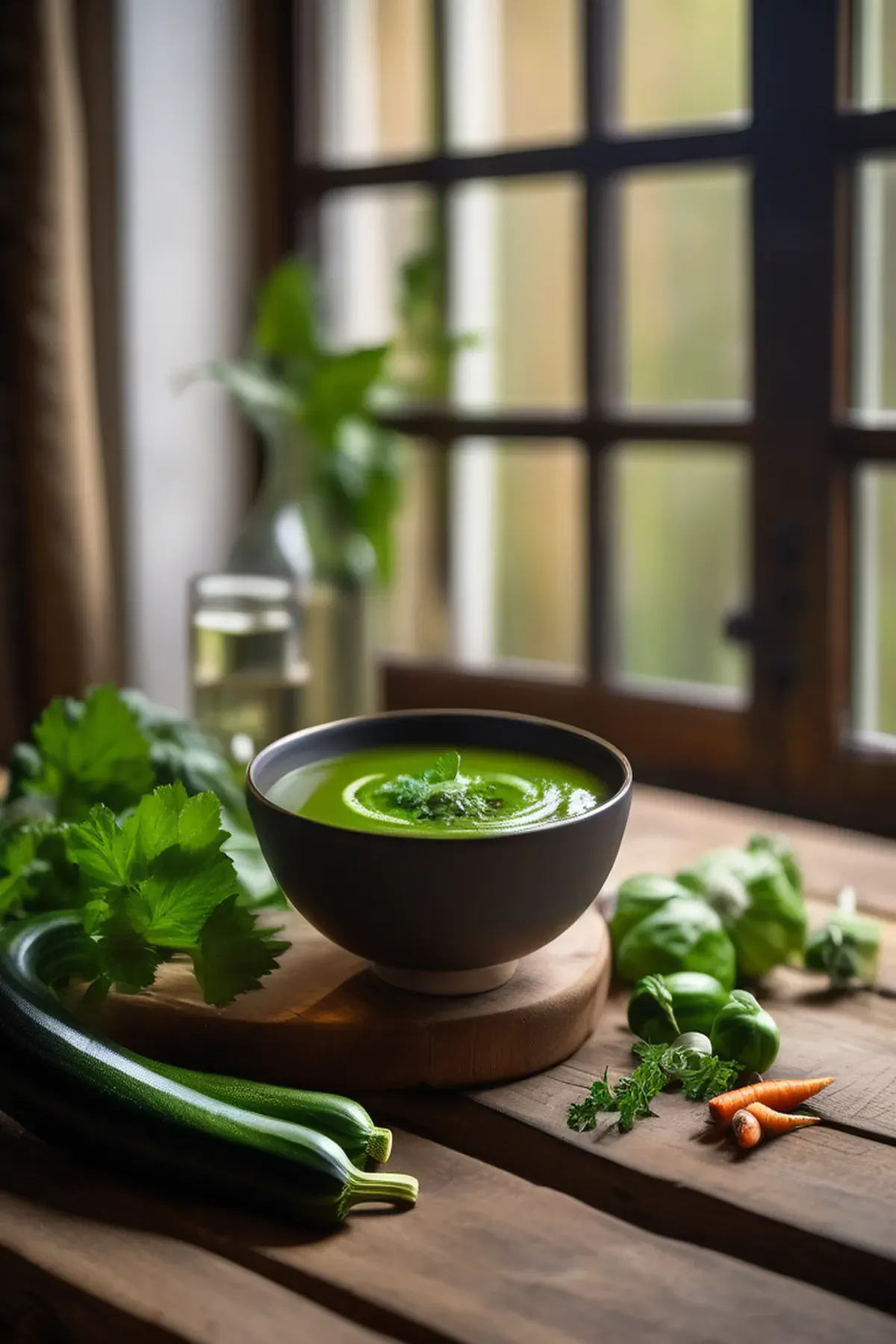 A refreshing summer soup featuring courgette, garlic, and aromatic herbs.
