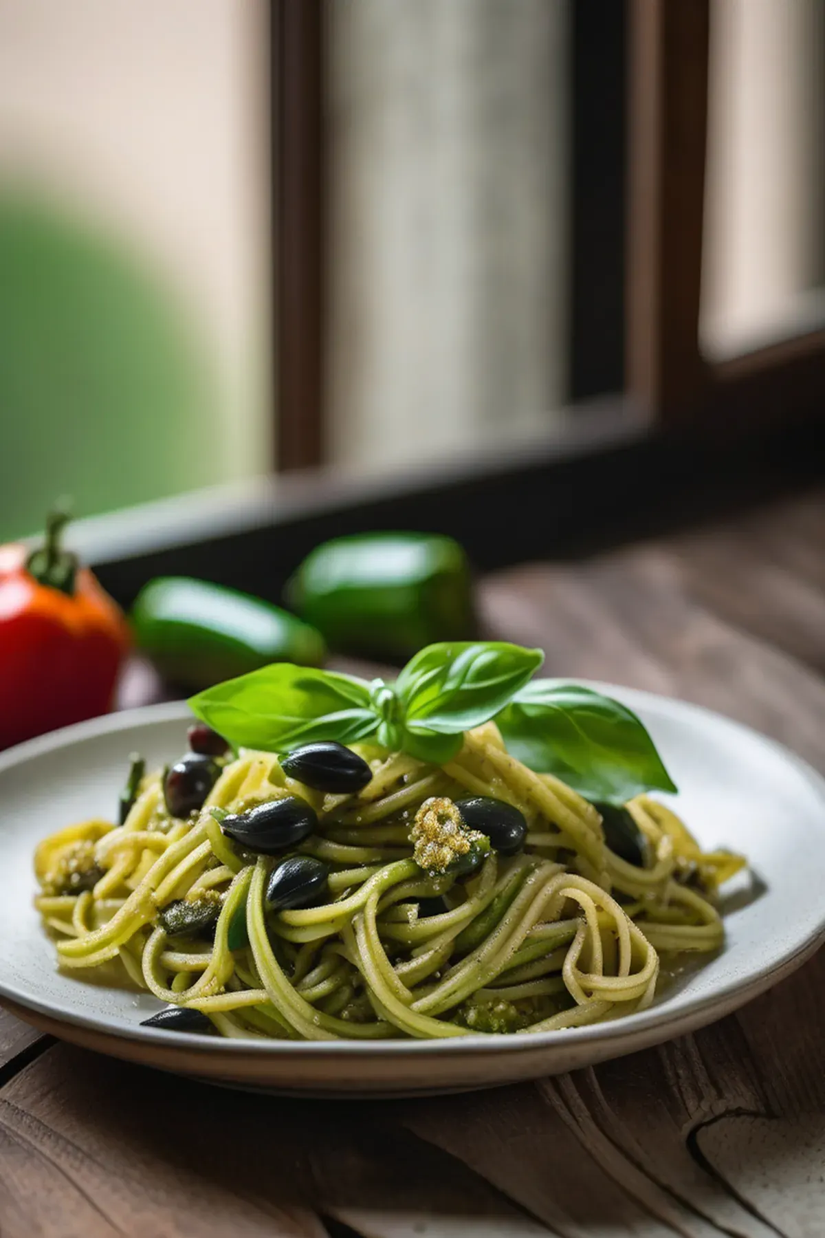This is one of my favorite quick weeknight suppers because it comes together in just twenty minutes flat. Fresh courgettes are wonderfully light and low in calories, making them perfect for a guilt free pasta dish that still feels indulgent. The combination of briny olives, peppery basil, and toasty pine nuts creates layers of flavor that taste far more complex than the simple ingredient list suggests. It's the kind of meal that proves you don't need much time or fuss to create something truly delicious and restaurant worthy at home.