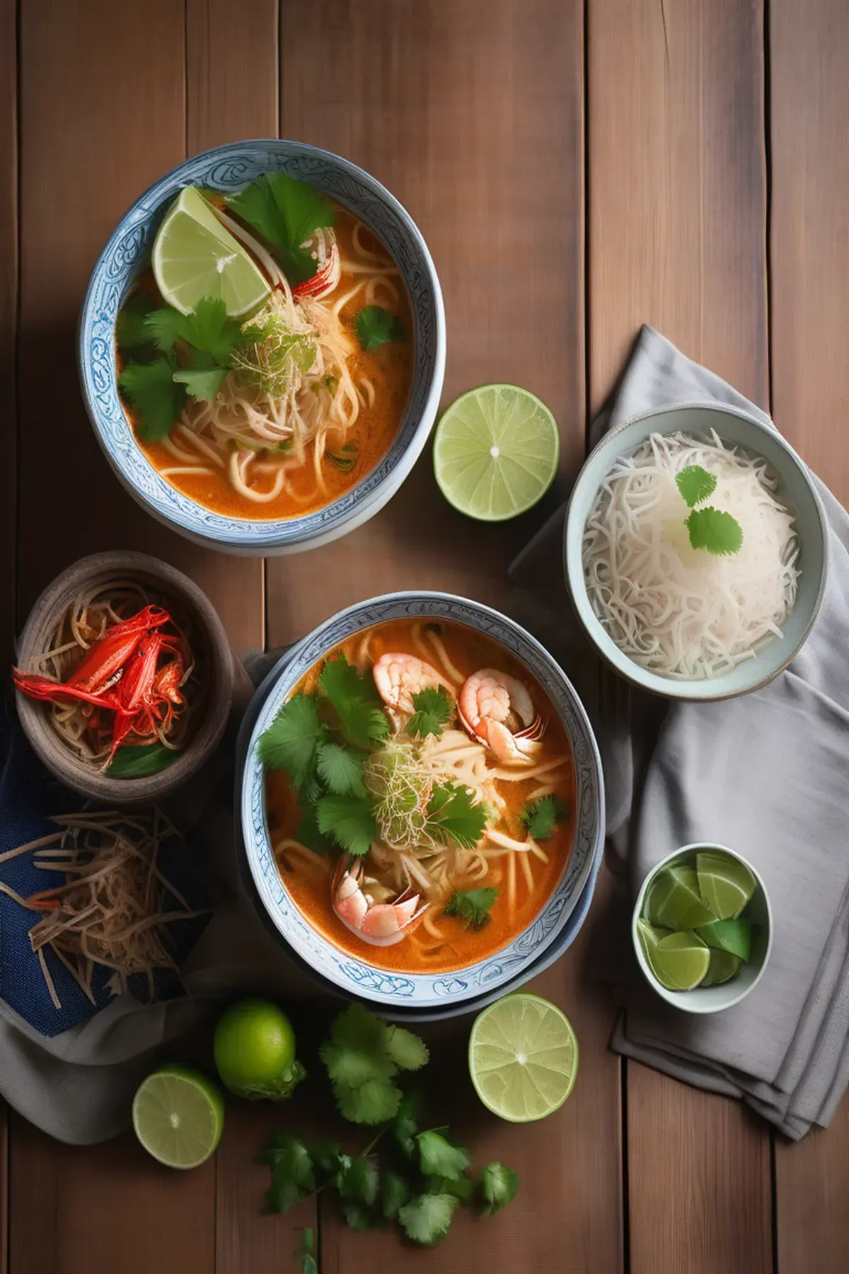 Indulge in the rich flavors of this spicy crab laksa, a popular Southeast Asian noodle soup.