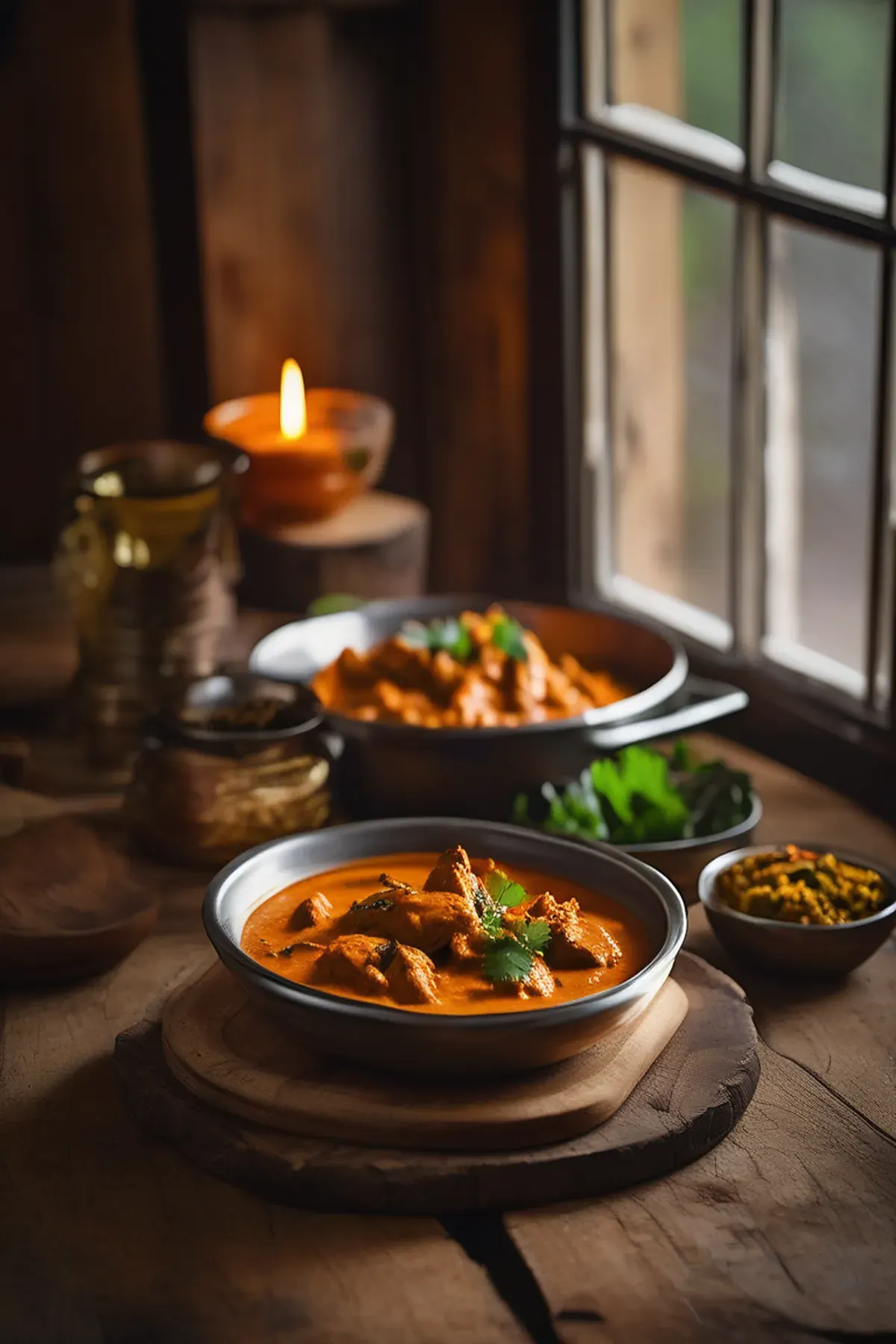 Creamy butter chicken with black mustard naans