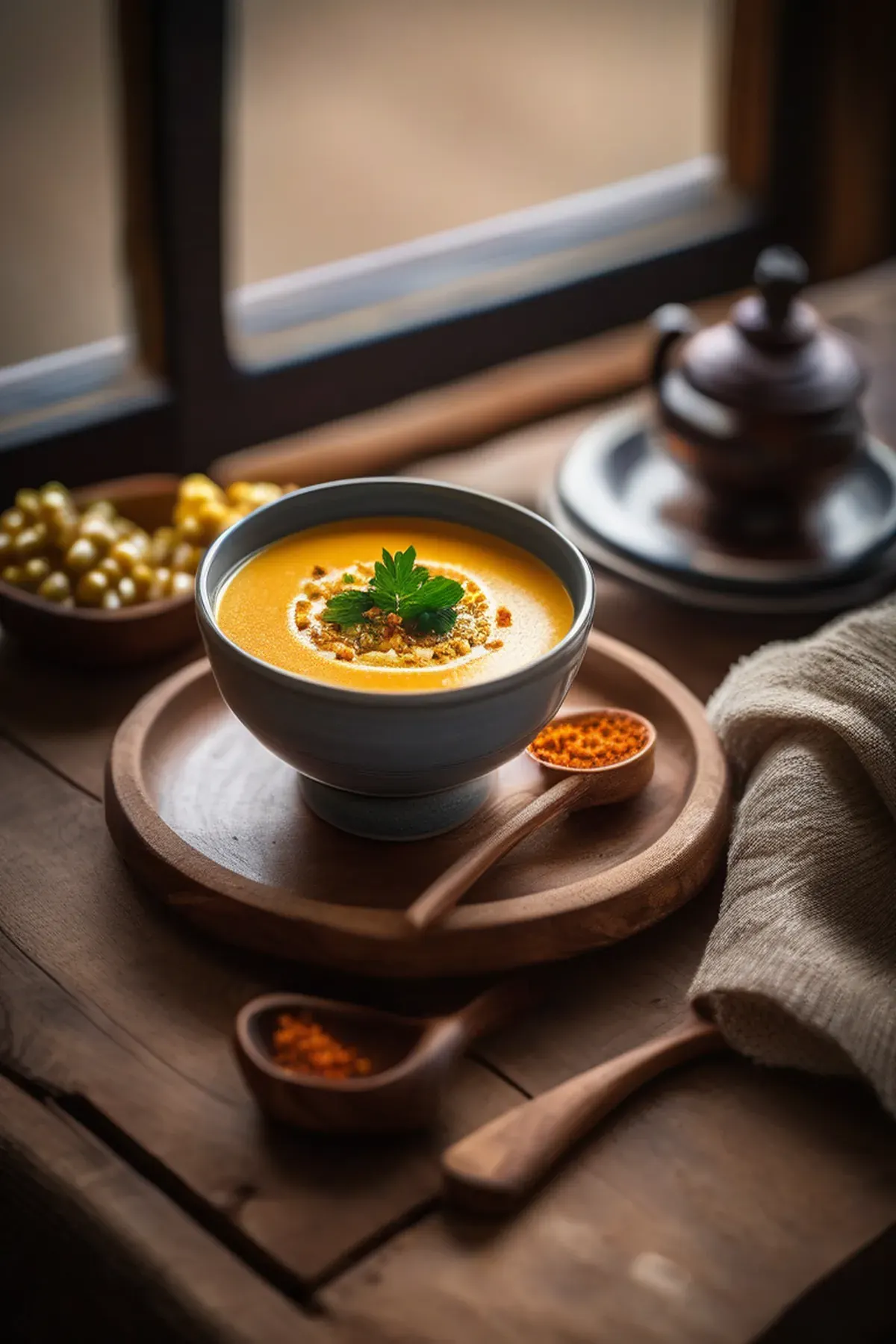 A hearty and comforting soup made with roasted parsnips and aromatic spices.