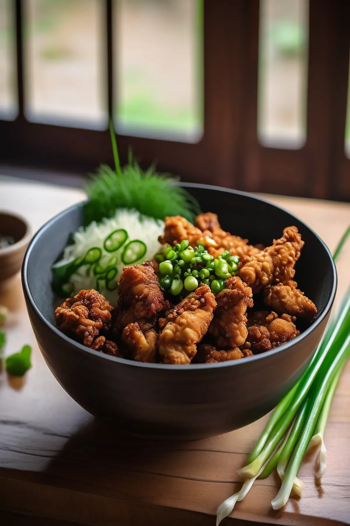Crispy fried chicken bowl with spring onion & ginger oil