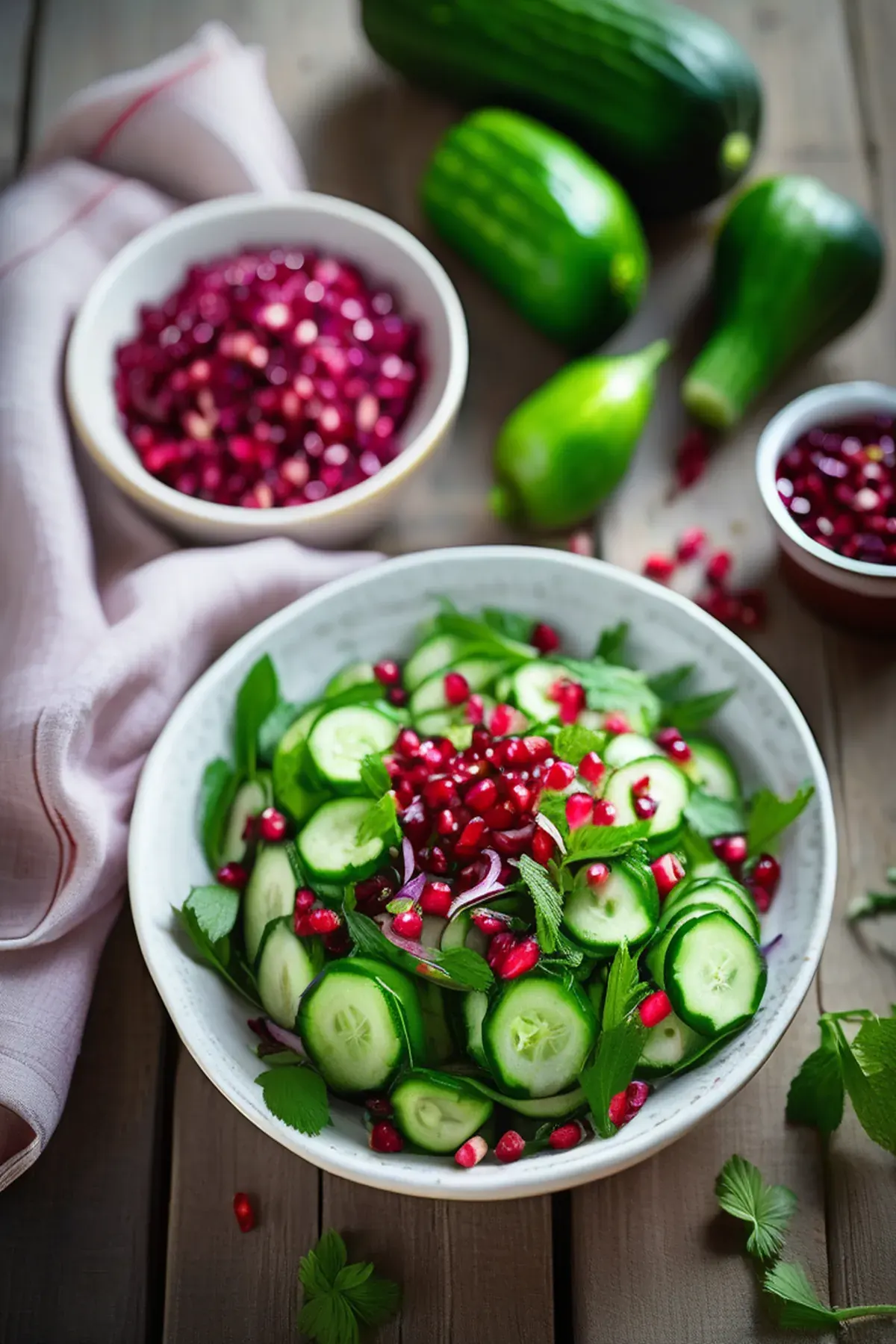 Cucumber & pomegranate salad with cumin and lime