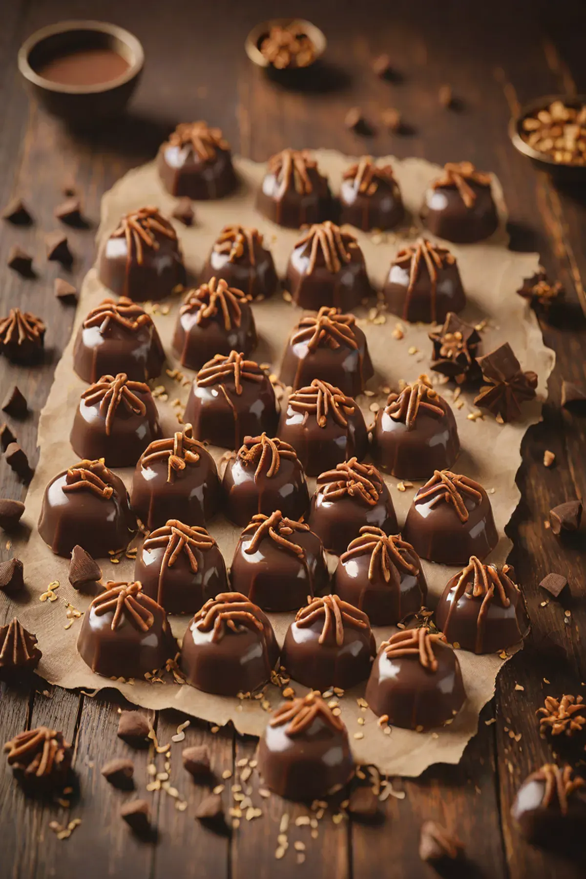 Place coated pralines on a piece of parchment paper and refrigerate for at least 30 minutes to allow the coating to set.