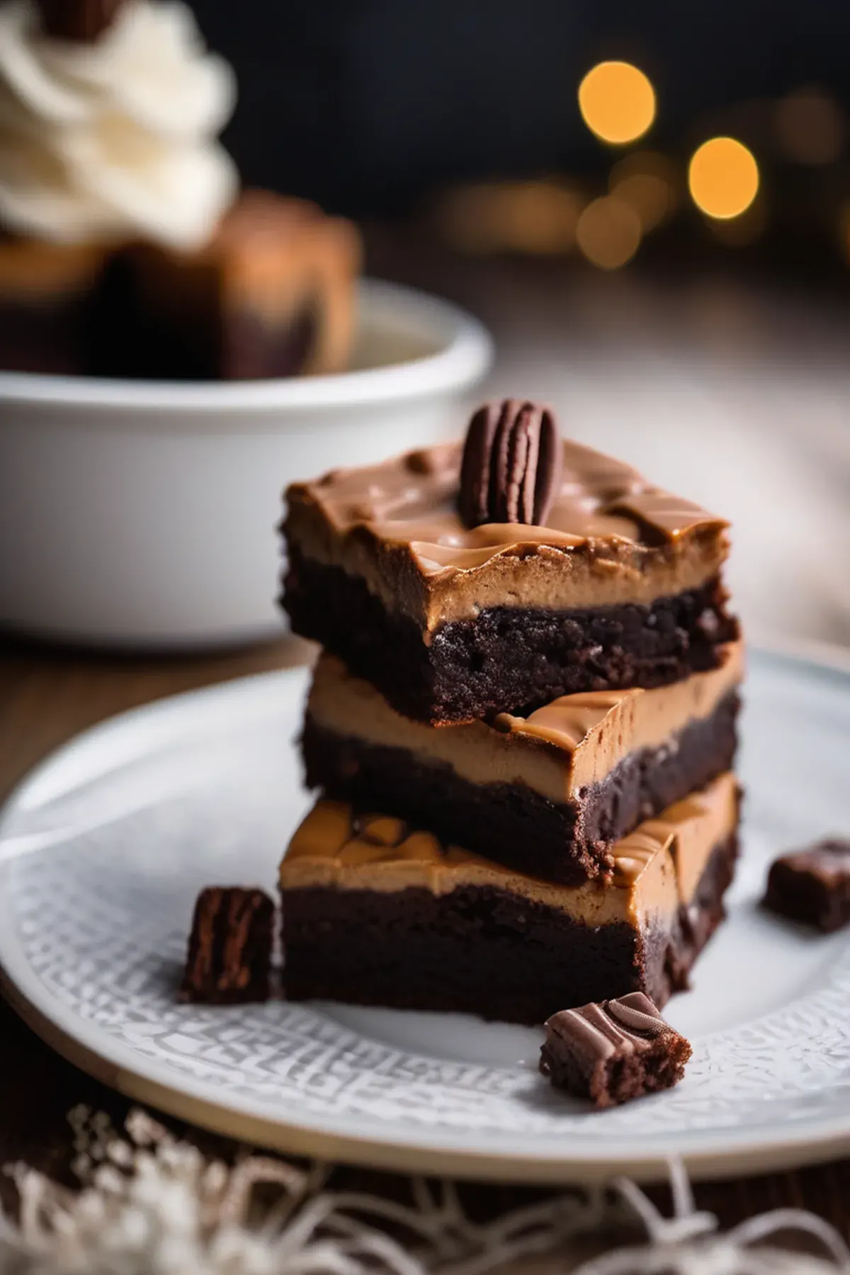Moist, fudgy brownies filled with a creamy dulce de leche cheesecake, topped with a layer of caramel sauce.