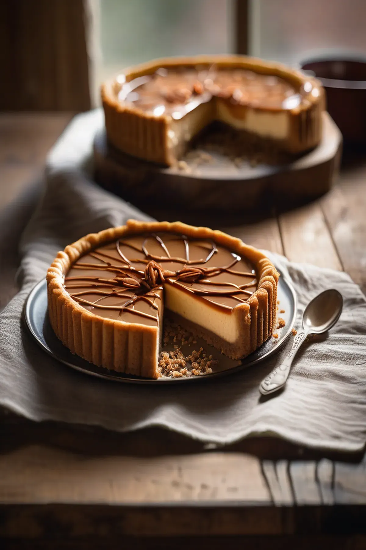 A rich and creamy cheesecake tart infused with the deep flavor of dulce de leche, perfect for dessert lovers.