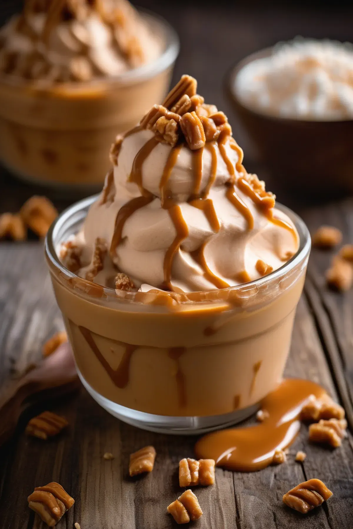 Rich and creamy dulce de leche frozen yogurt, perfect for a sweet treat.