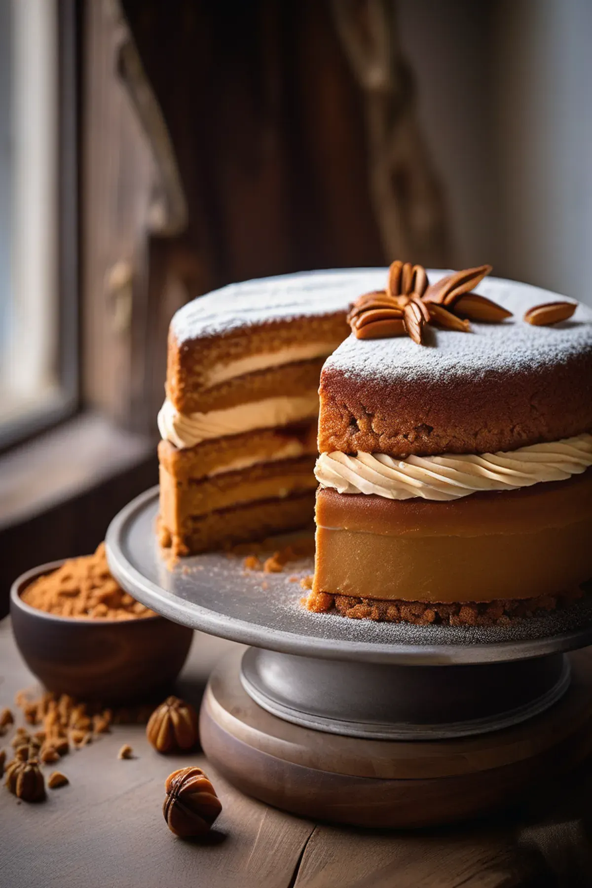 A moist and decadent cake filled with a rich dulce de leche filling, perfect for special occasions.